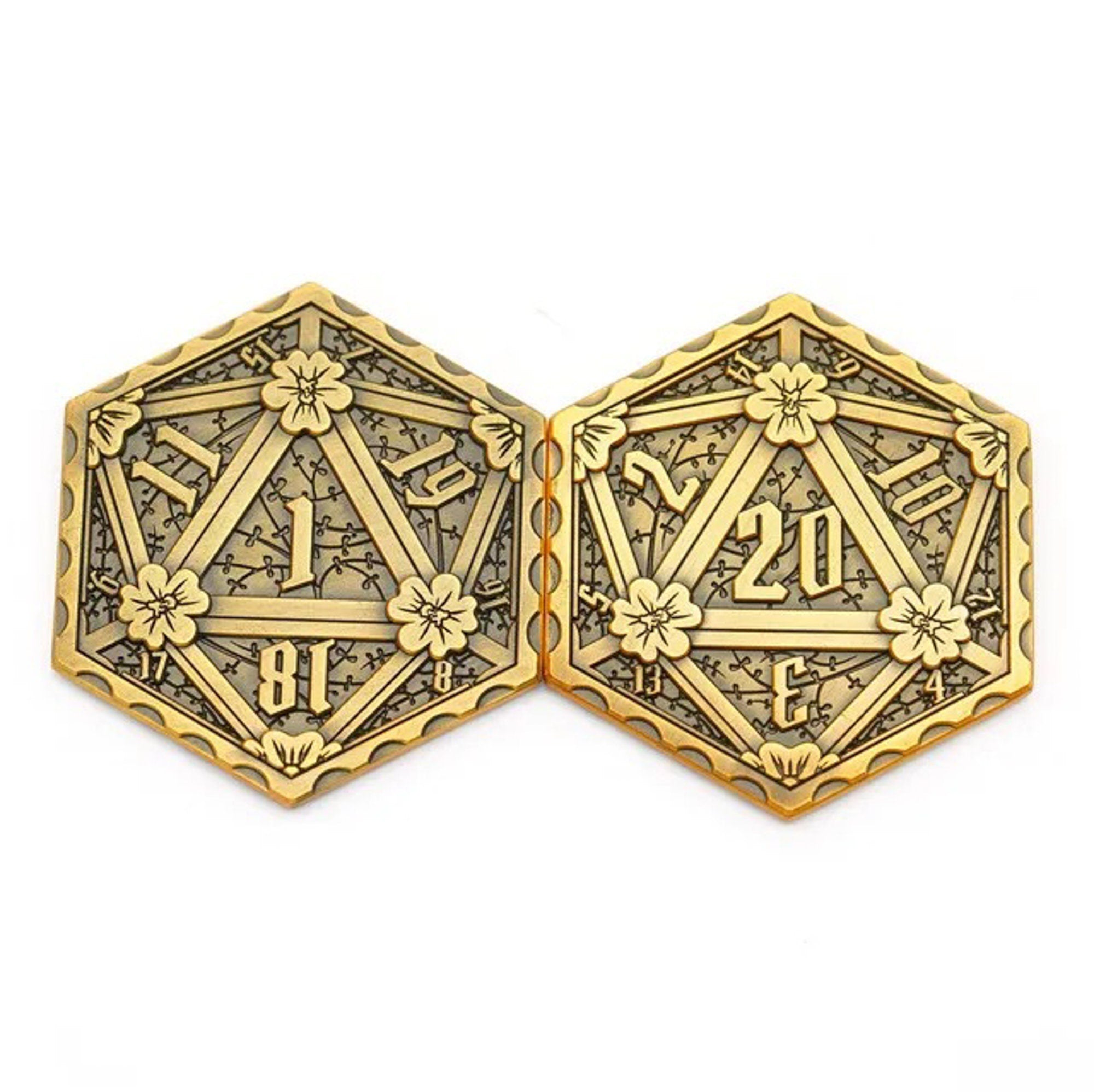 Golden Metal D2 Dnd Coin | TTRPG Coin for Dungeons & Dragons (DnD)
