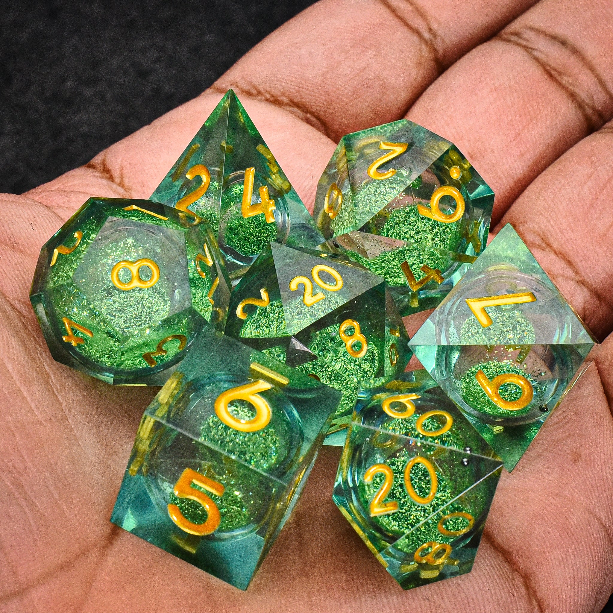 Green Liquid Core DND/TTRPG Dice set