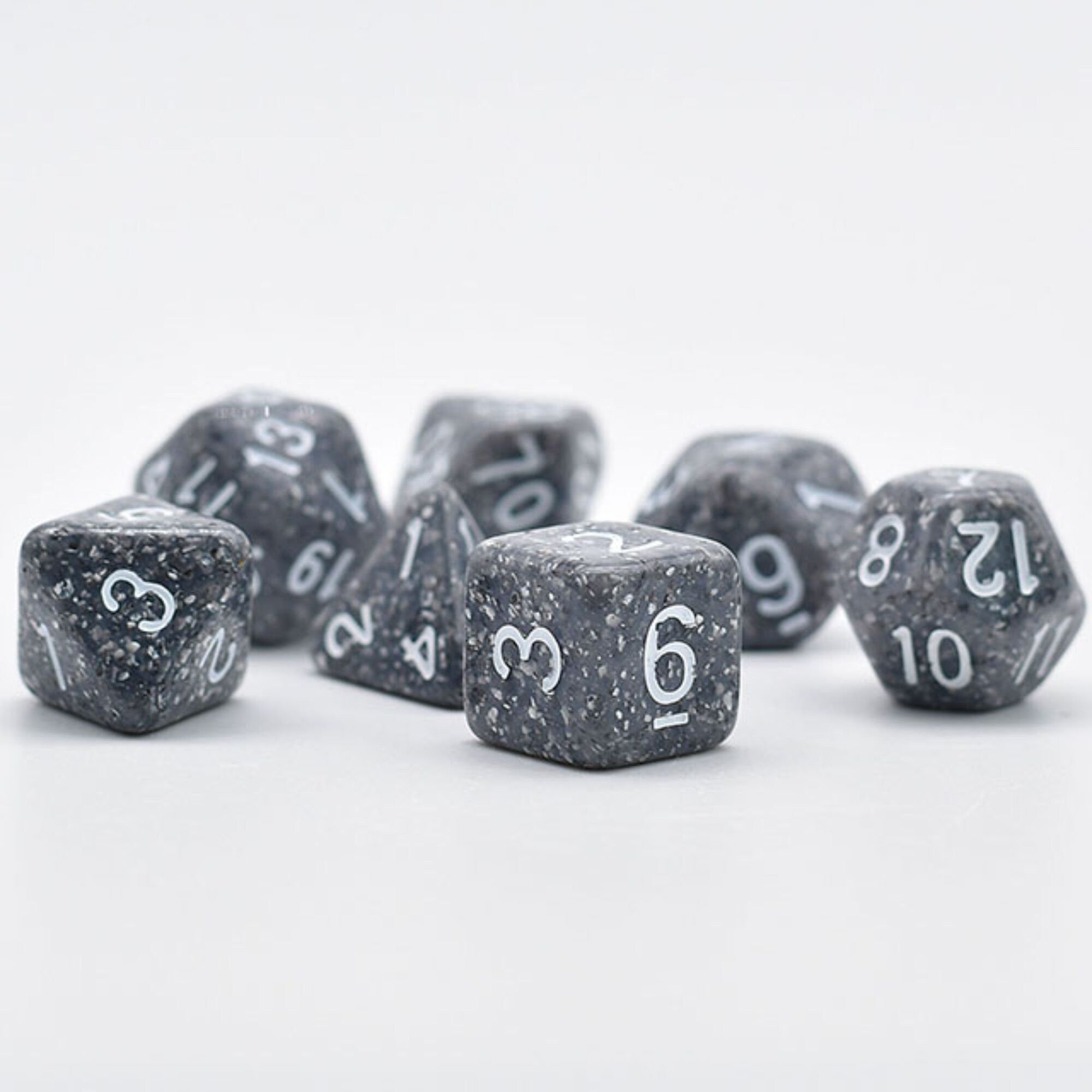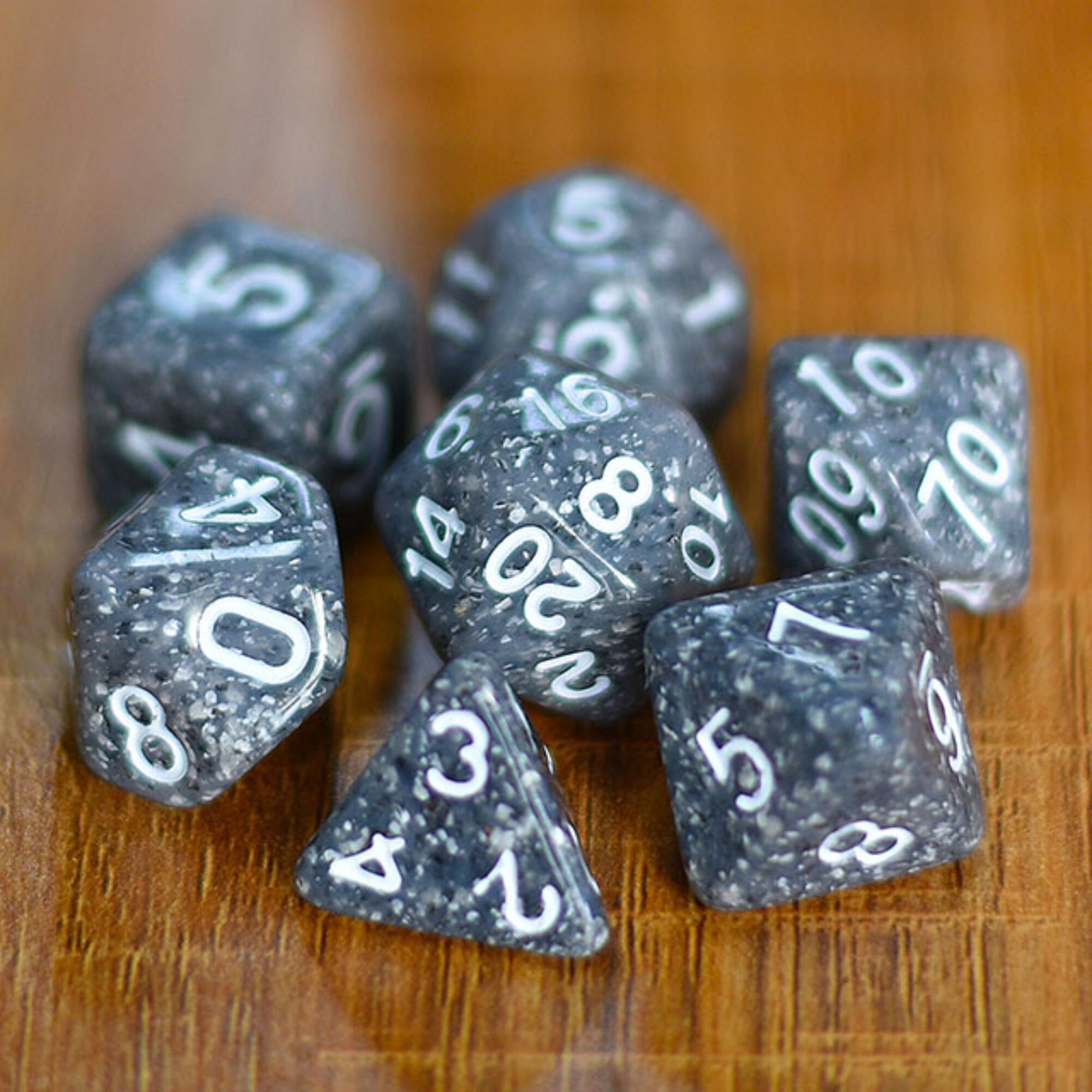 The set includes the following 7 Polyhedral Dice: 1D4, 1D6, 1D8, 1D10, 1D12, 1D20 and 1D%. These are Compatible with Dungeons & Dragons, Pathfinder, Warhammer and many other table top board gaming titles.