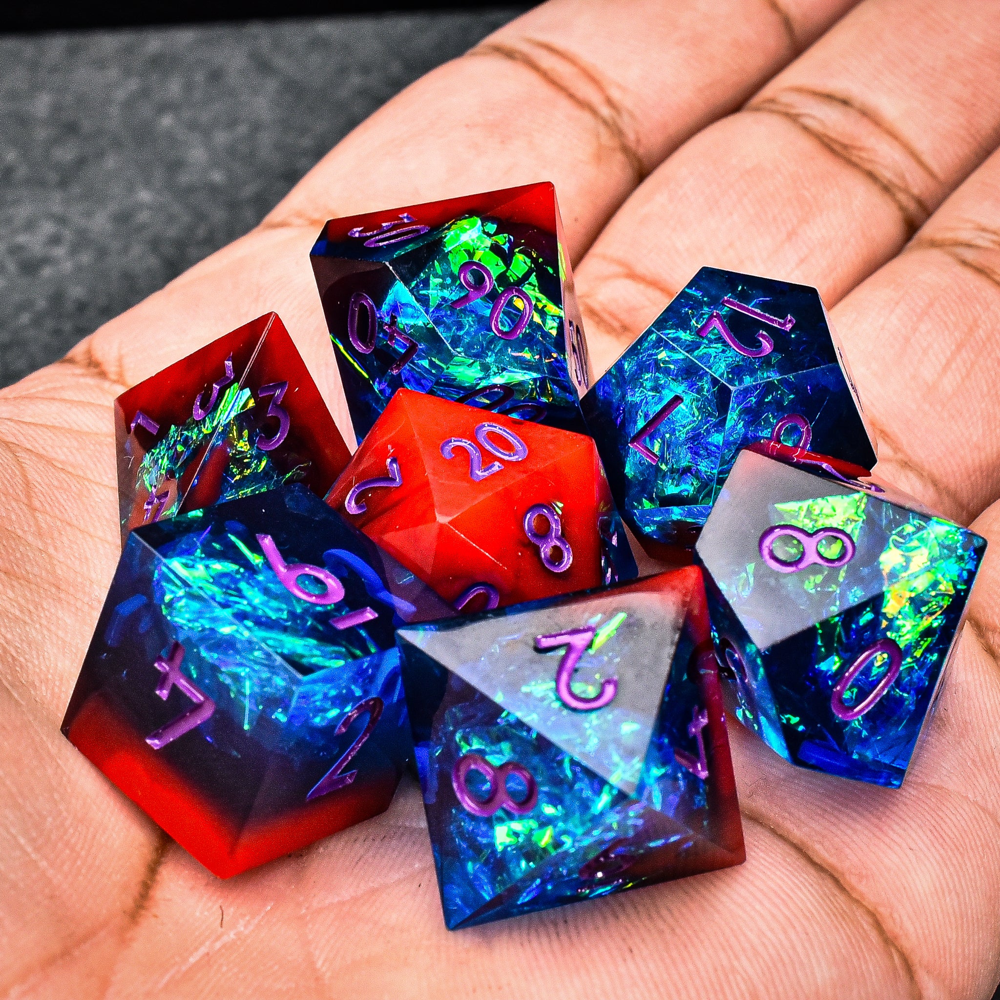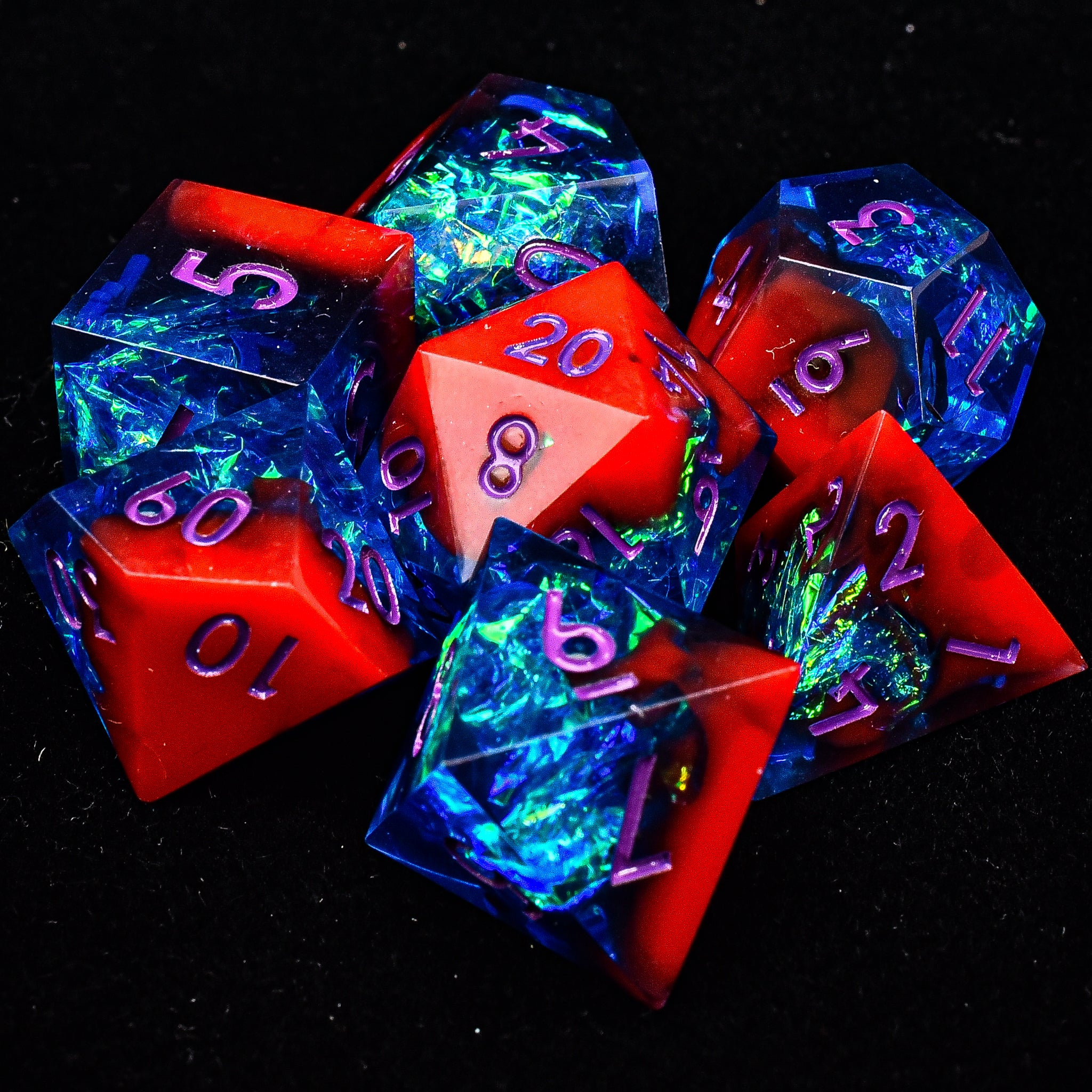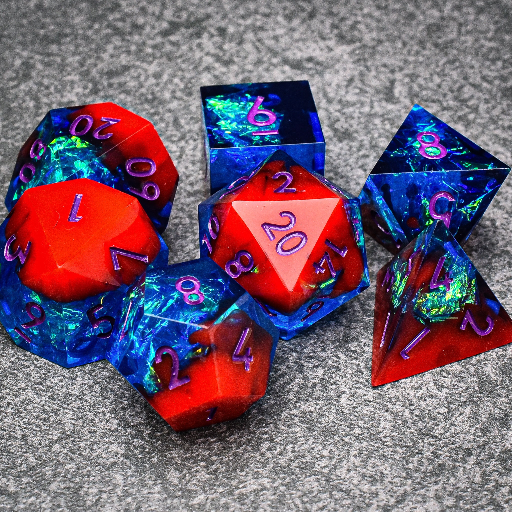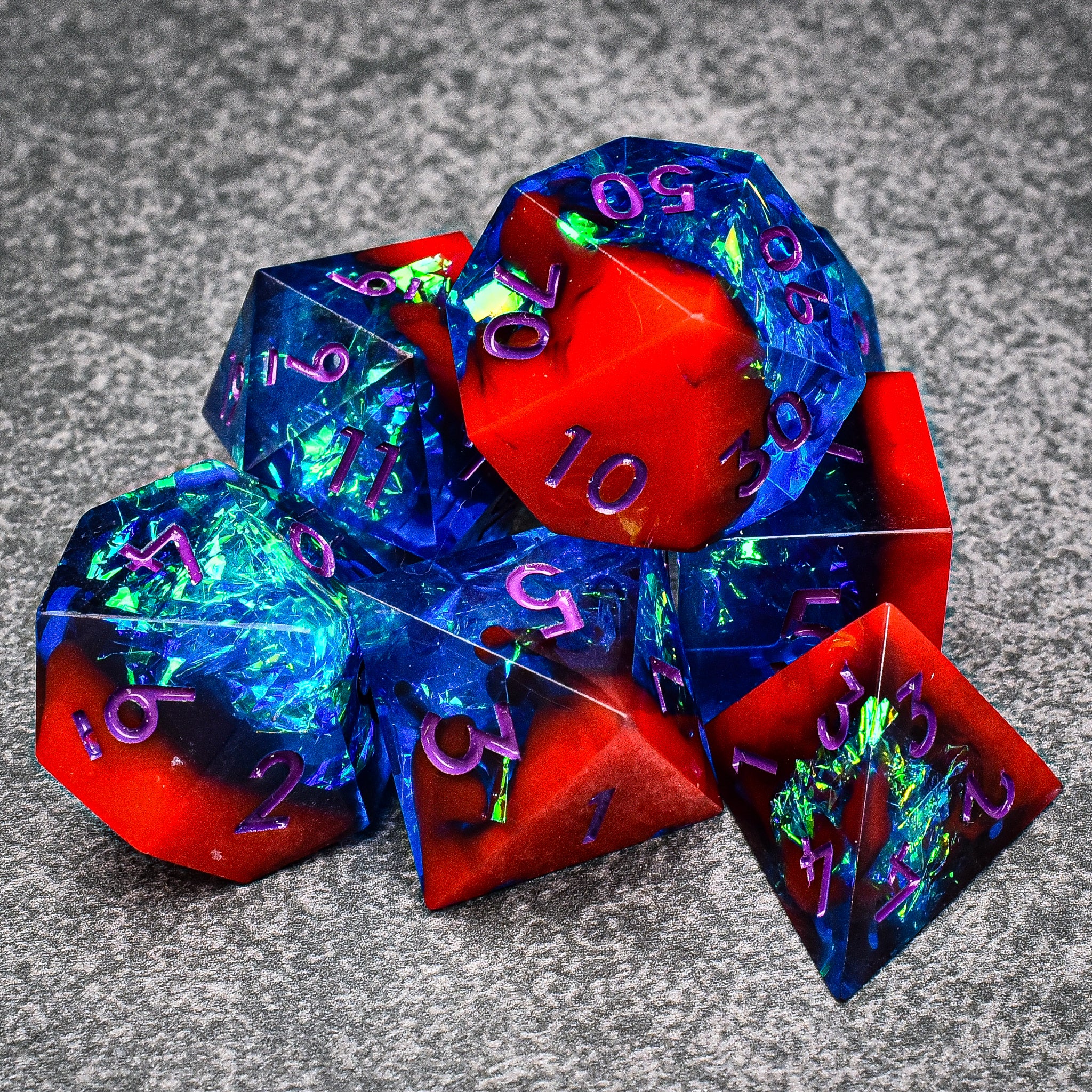Red & Blue Sharp Edge DND/TTRPG Dice set