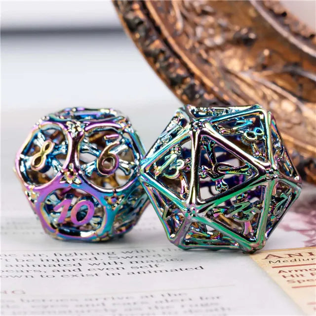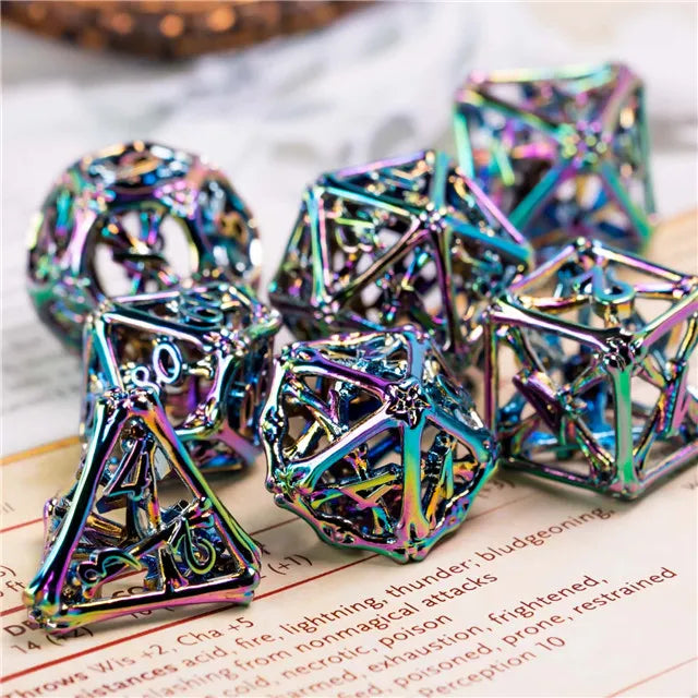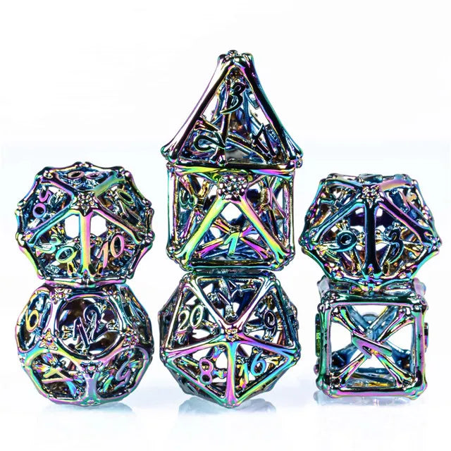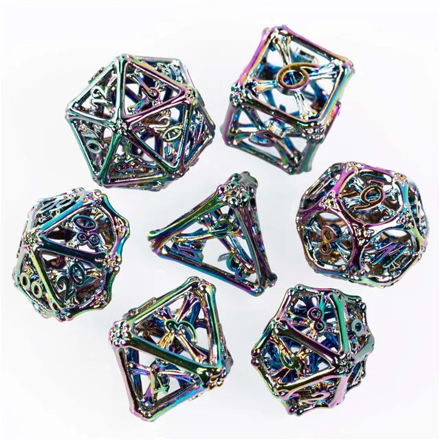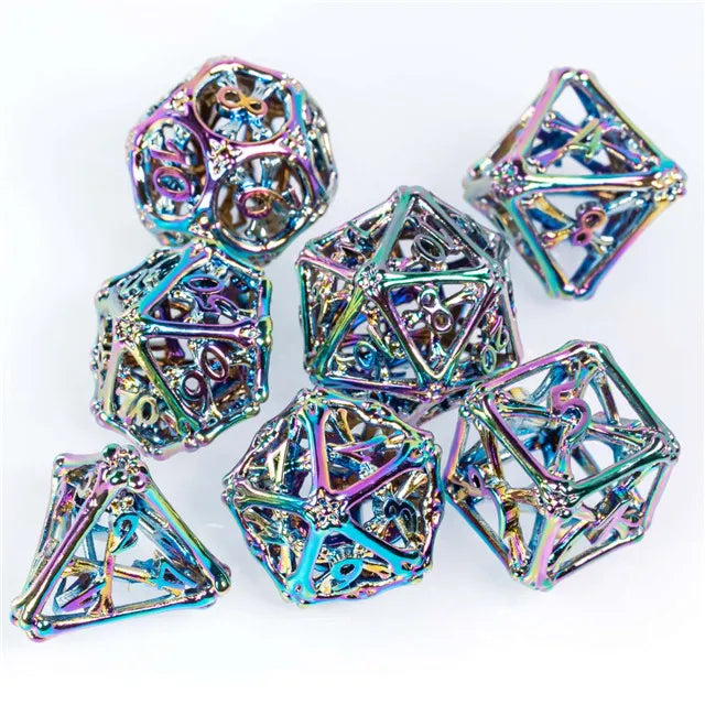 The set includes the following 7 Polyhedral Dice: 1D4, 1D6, 1D8, 1D10, 1D12, 1D20 and 1D%. These are Compatible with Dungeons & Dragons, Pathfinder, Warhammer and many other table top board gaming titles.