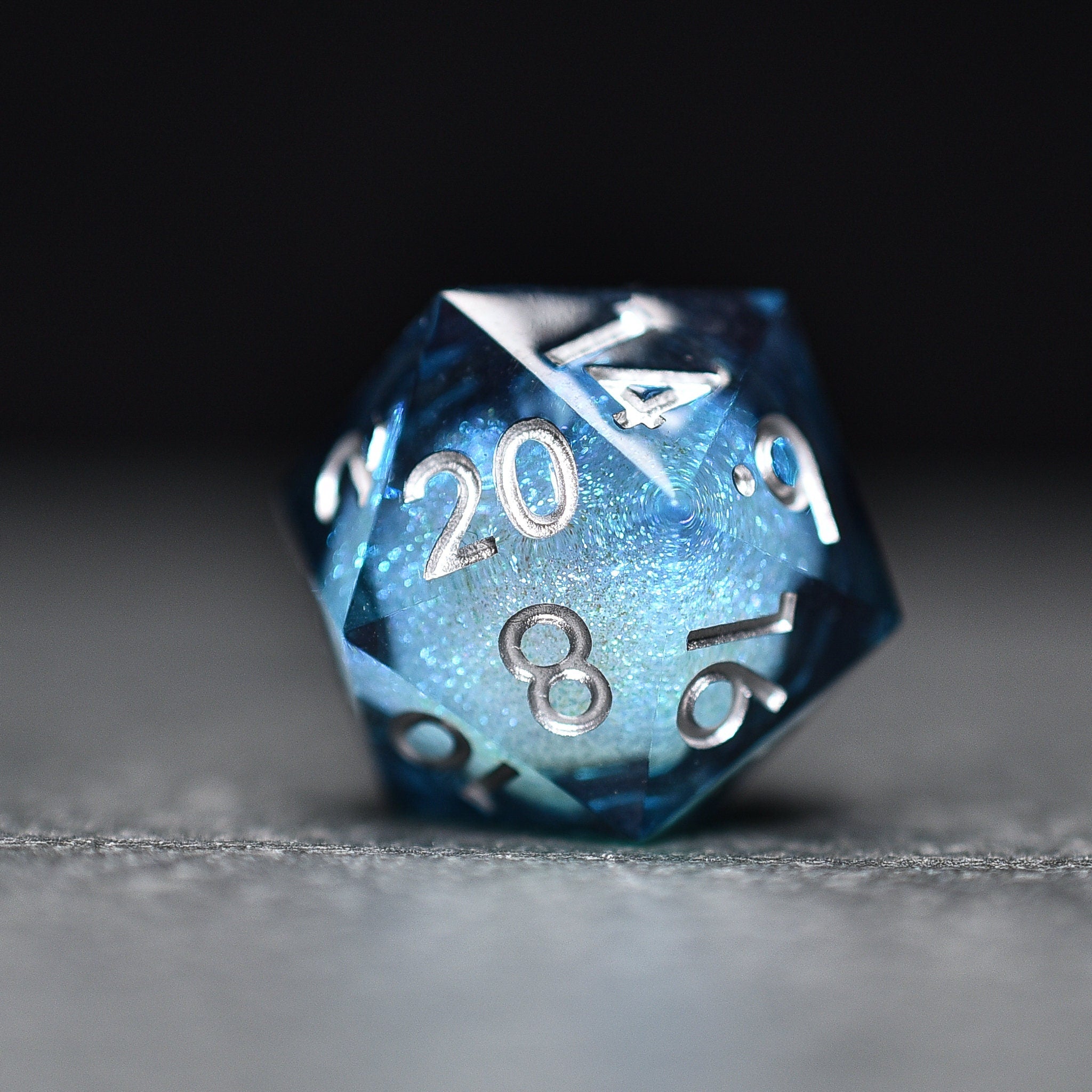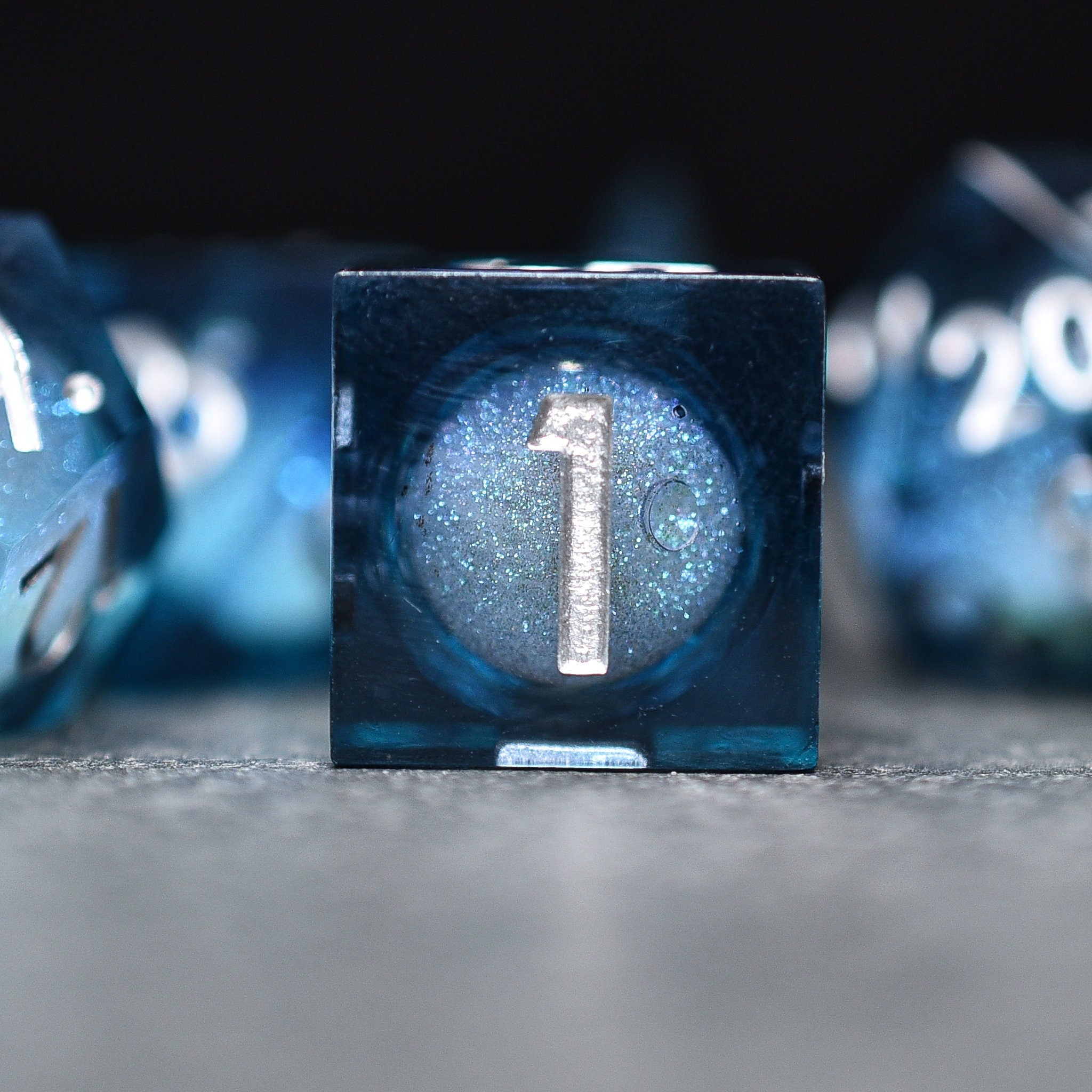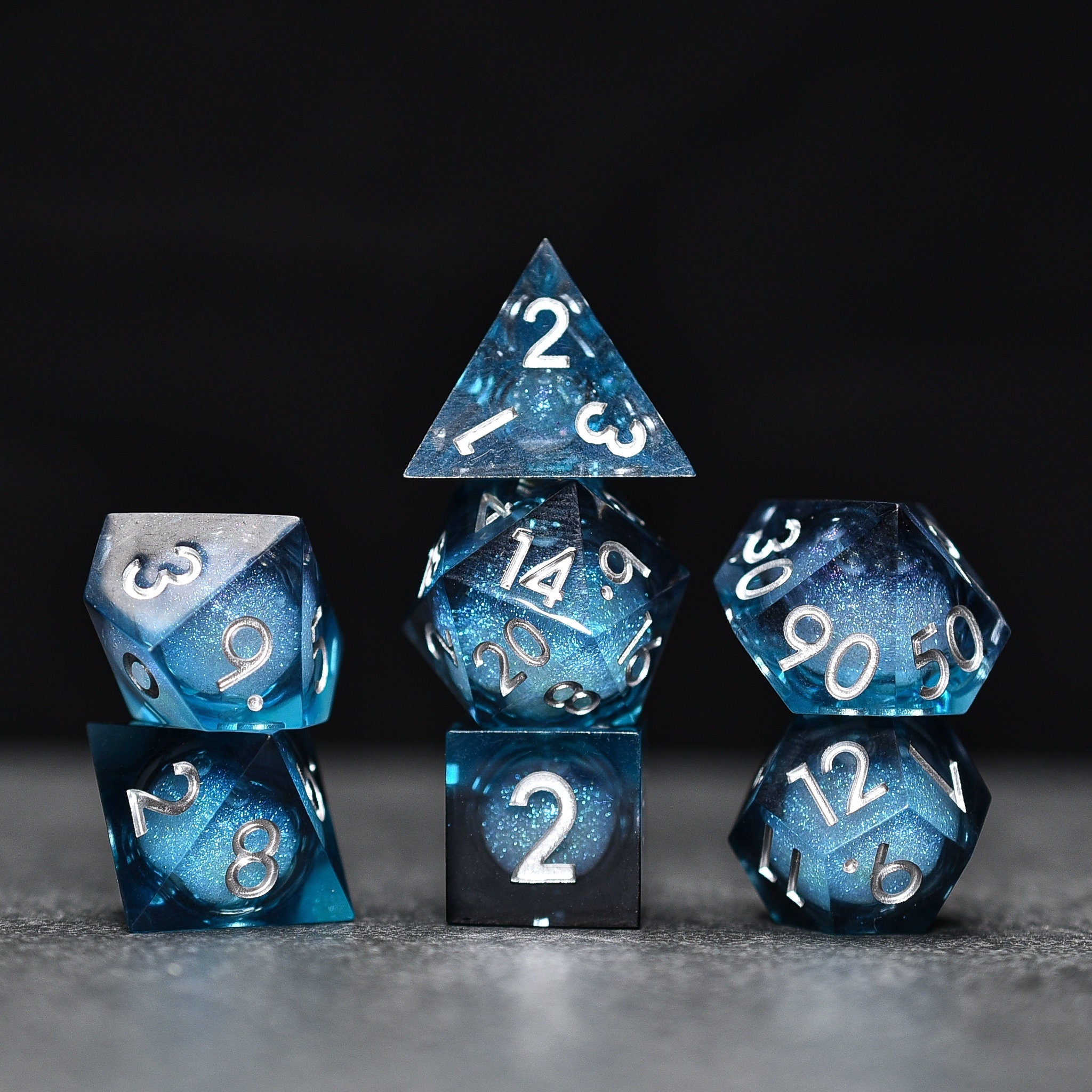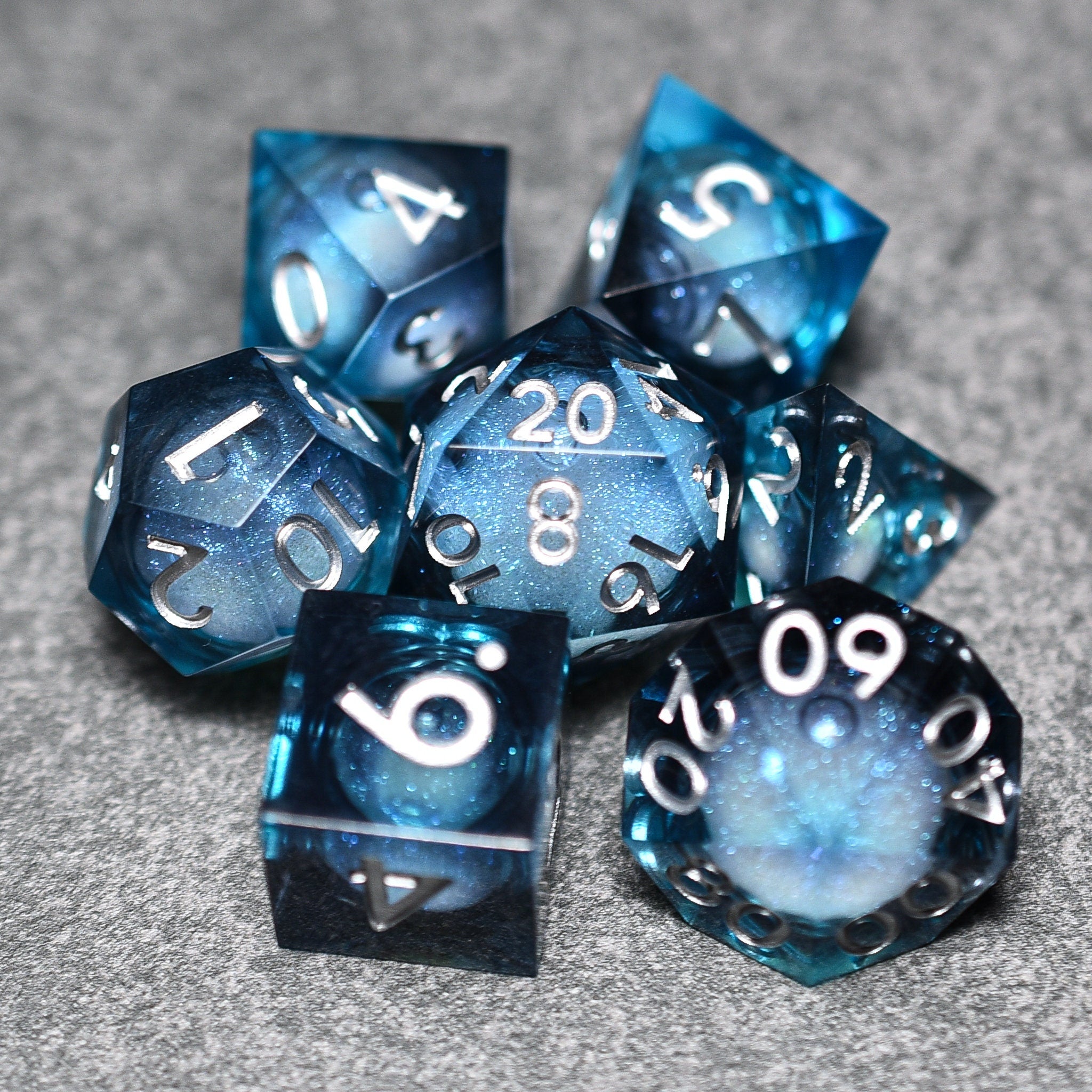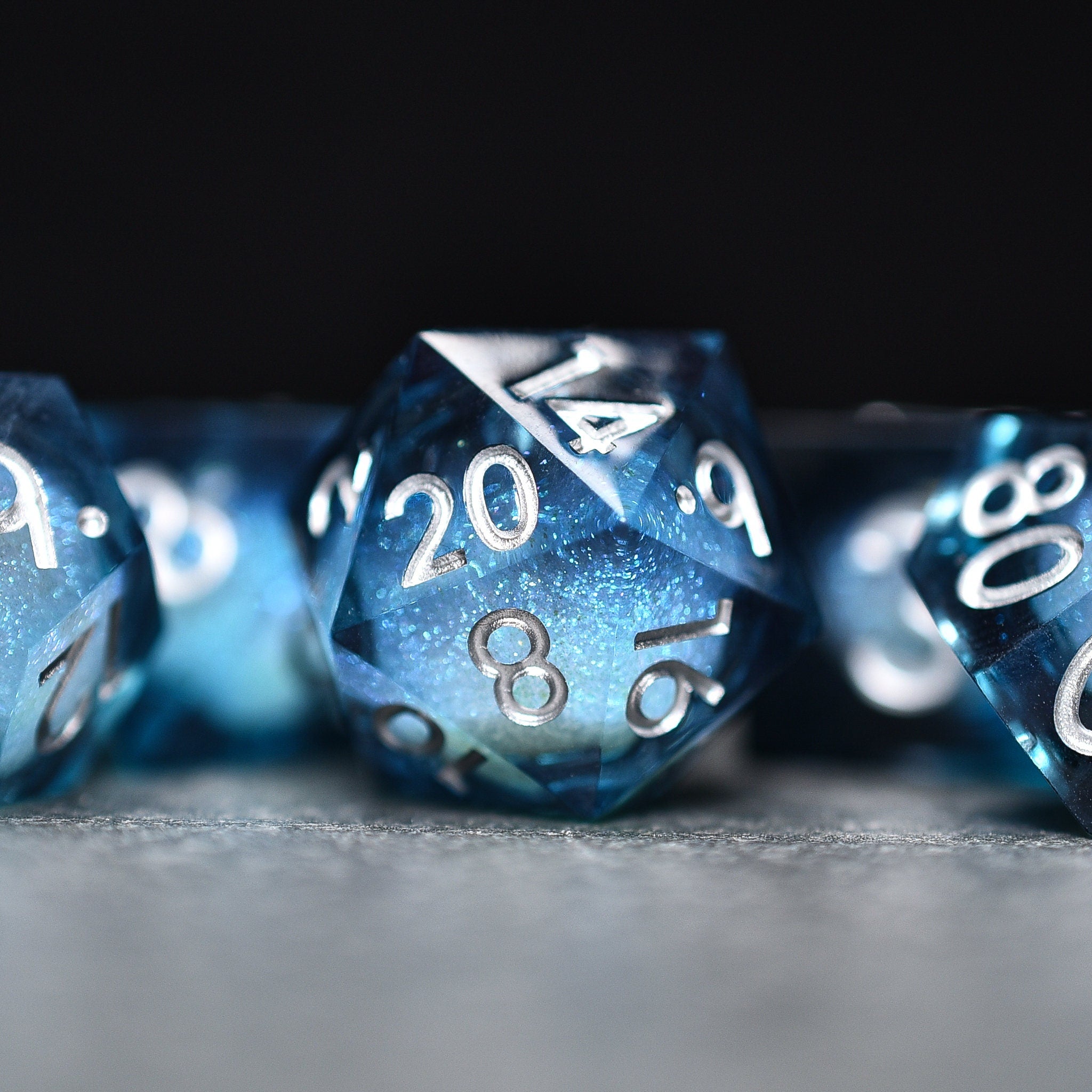 Blue Opal Liquid Core Sharp Edge DND/TTRPG Dice set
