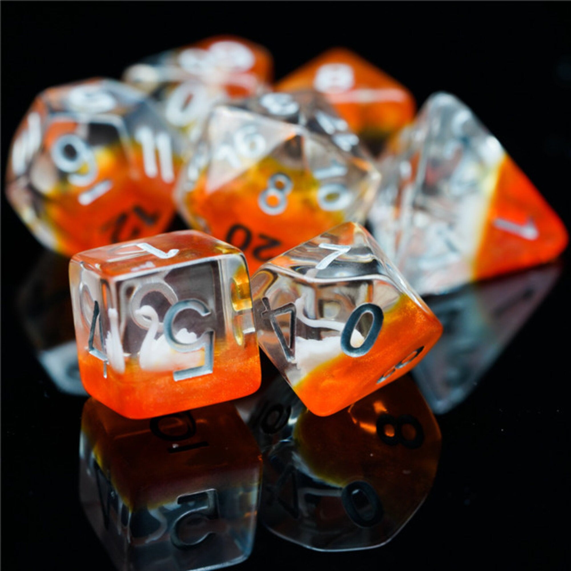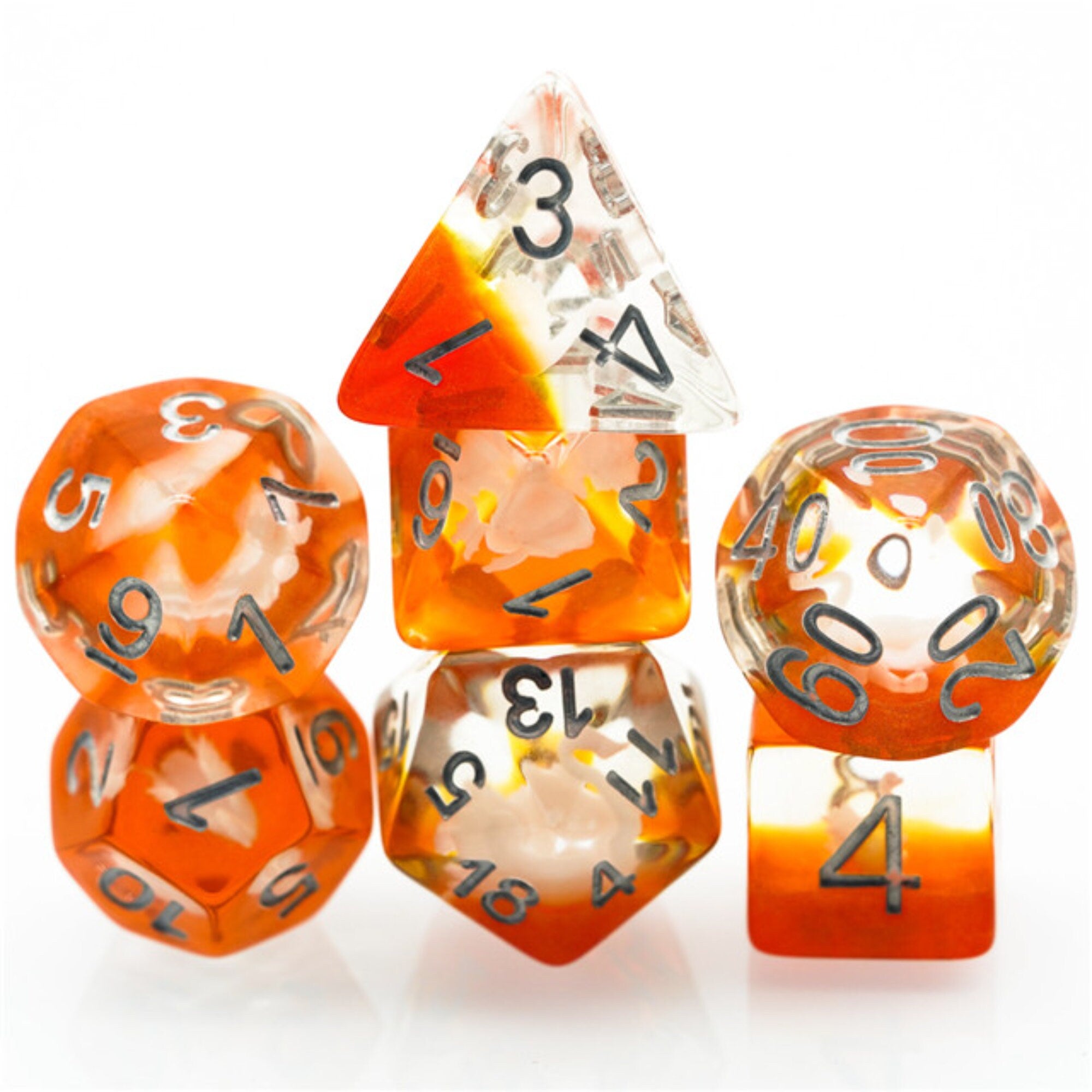 The set includes the following 7 Polyhedral Dice: 1D4, 1D6, 1D8, 1D10, 1D12, 1D20 and 1D%. These are Compatible with Dungeons & Dragons, Pathfinder, Warhammer and many other table top board gaming titles.