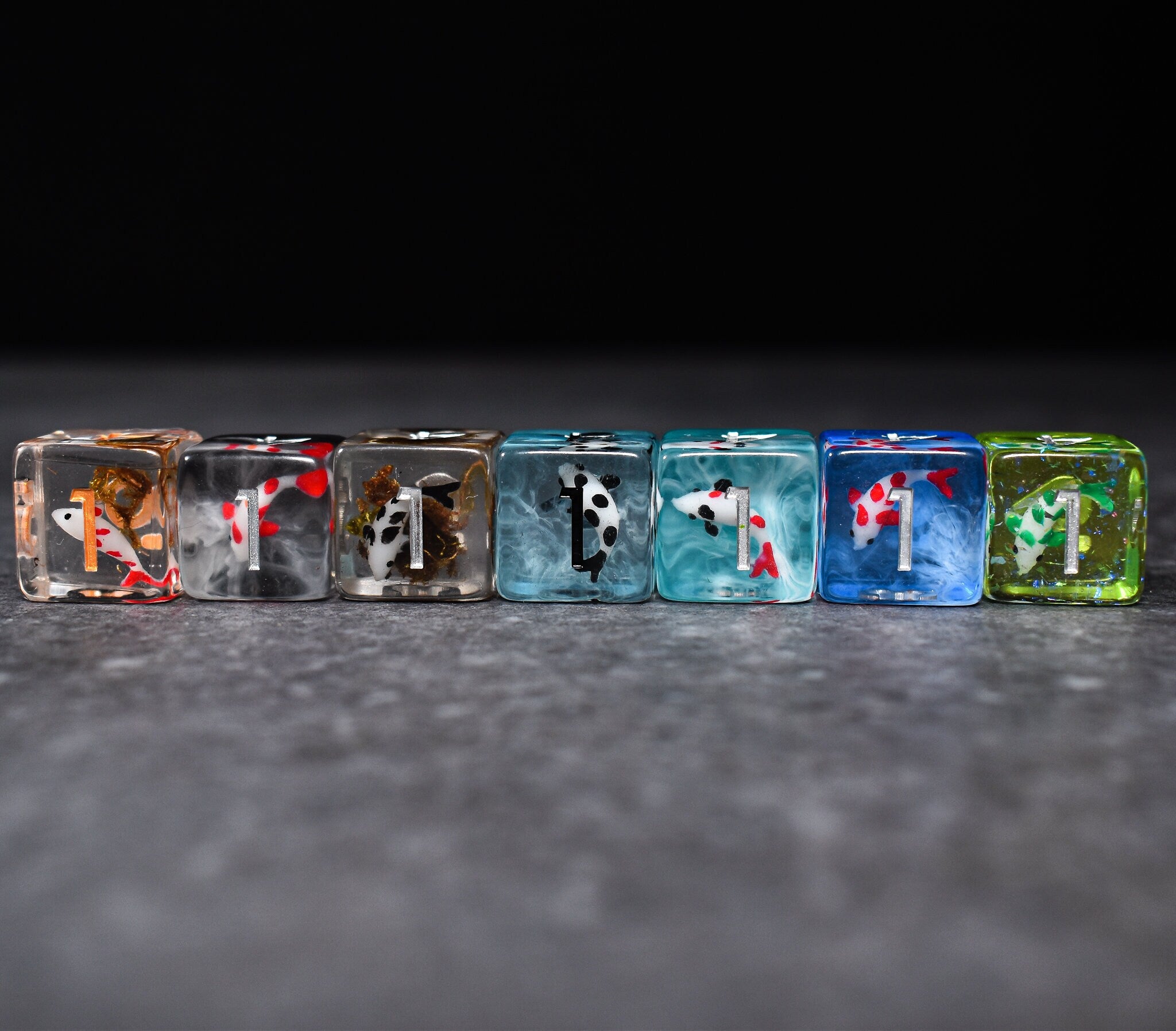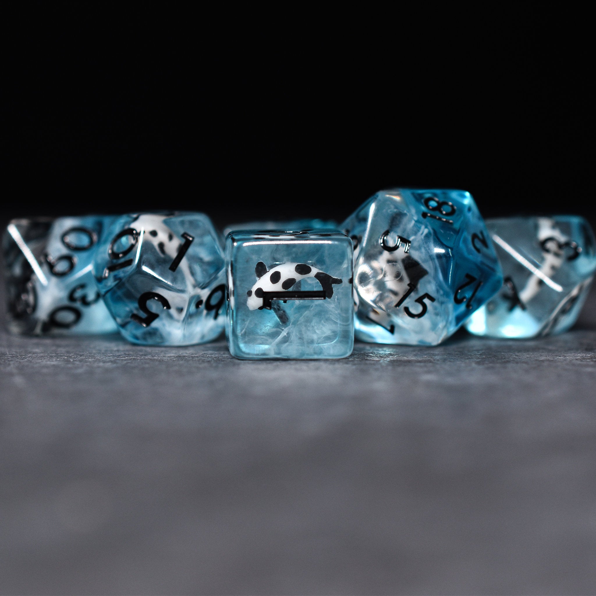The set includes the following 7 Polyhedral Dice: 1D4, 1D6, 1D8, 1D10, 1D12, 1D20 and 1D%. These are Compatible with Dungeons & Dragons, Pathfinder, Warhammer and many other table top board gaming titles.