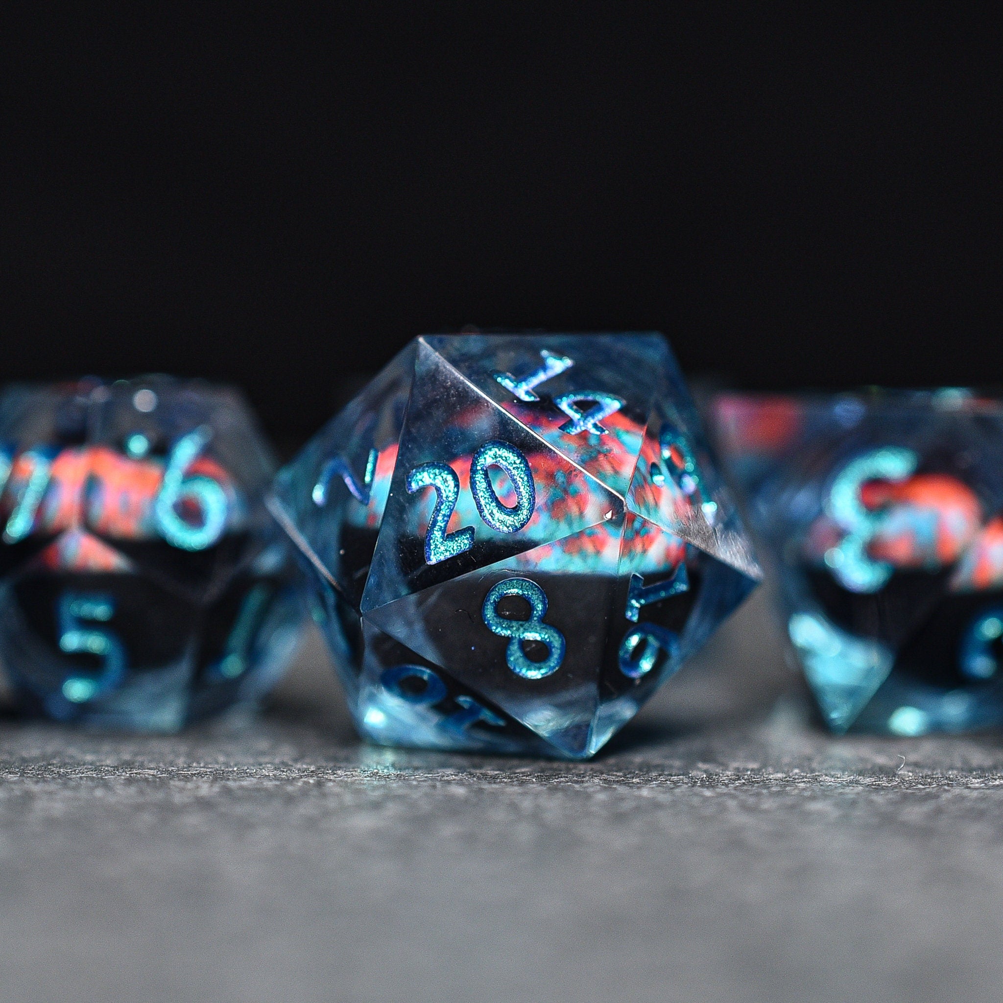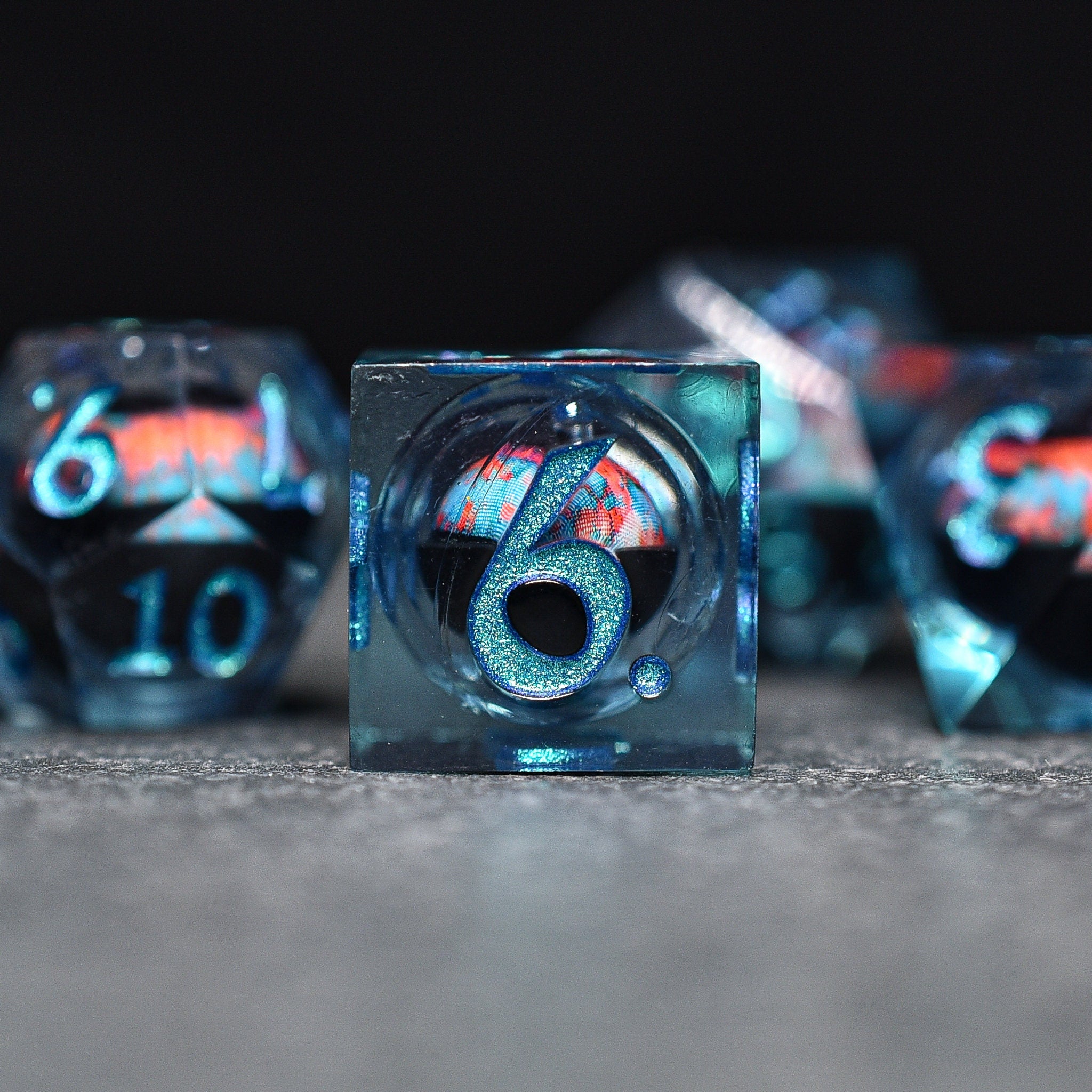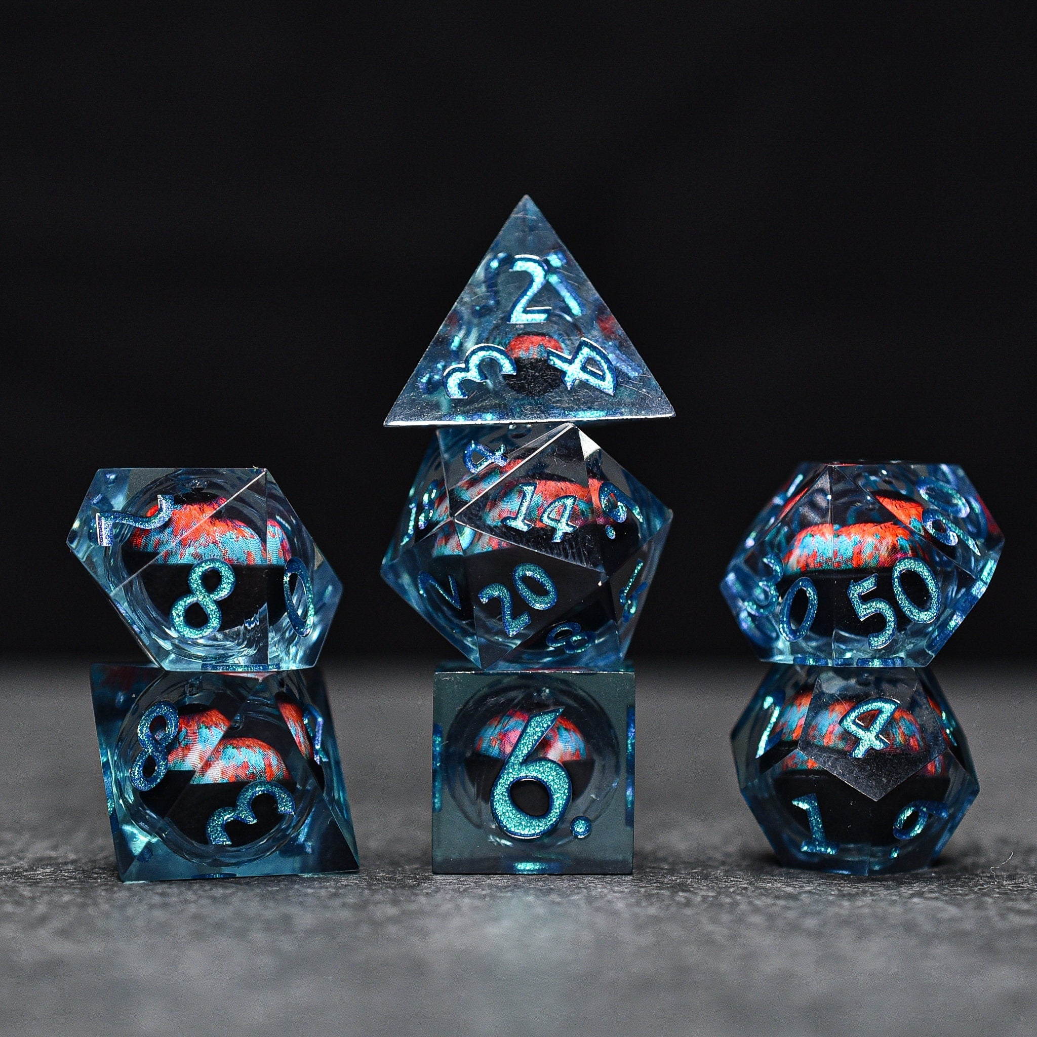 Beholder Moving Eye Liquid Core Sharp Edge DND/TTRPG Dice set