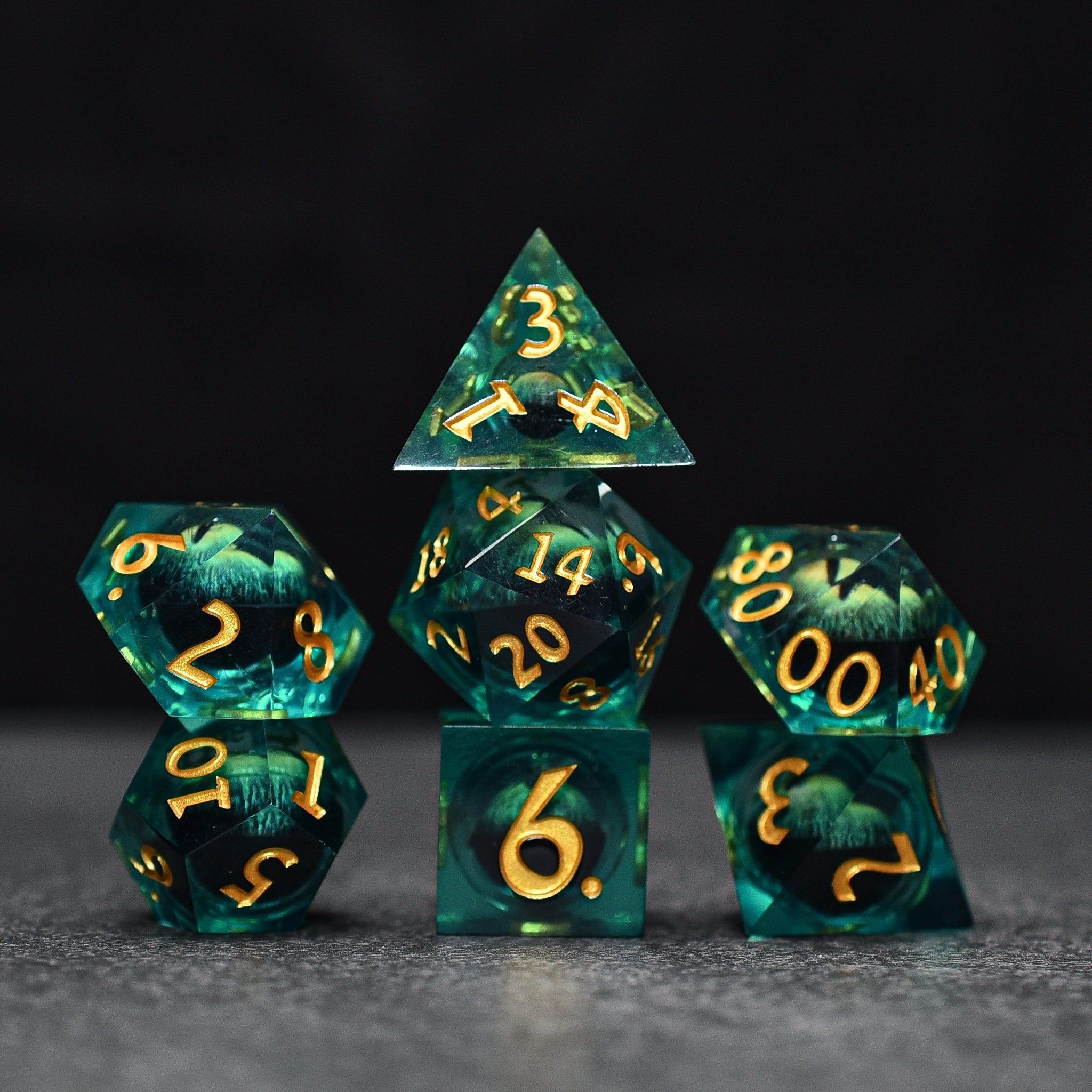 Eye of the Dragon Moving Eye Liquid Core DND/TTRPG Dice set