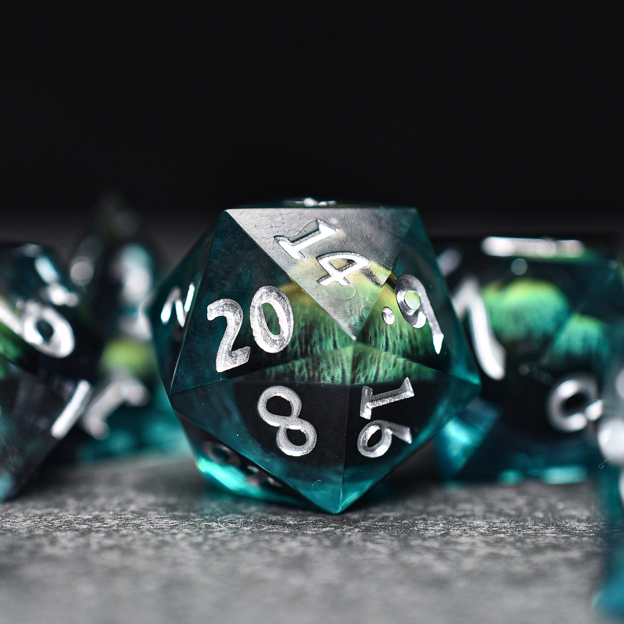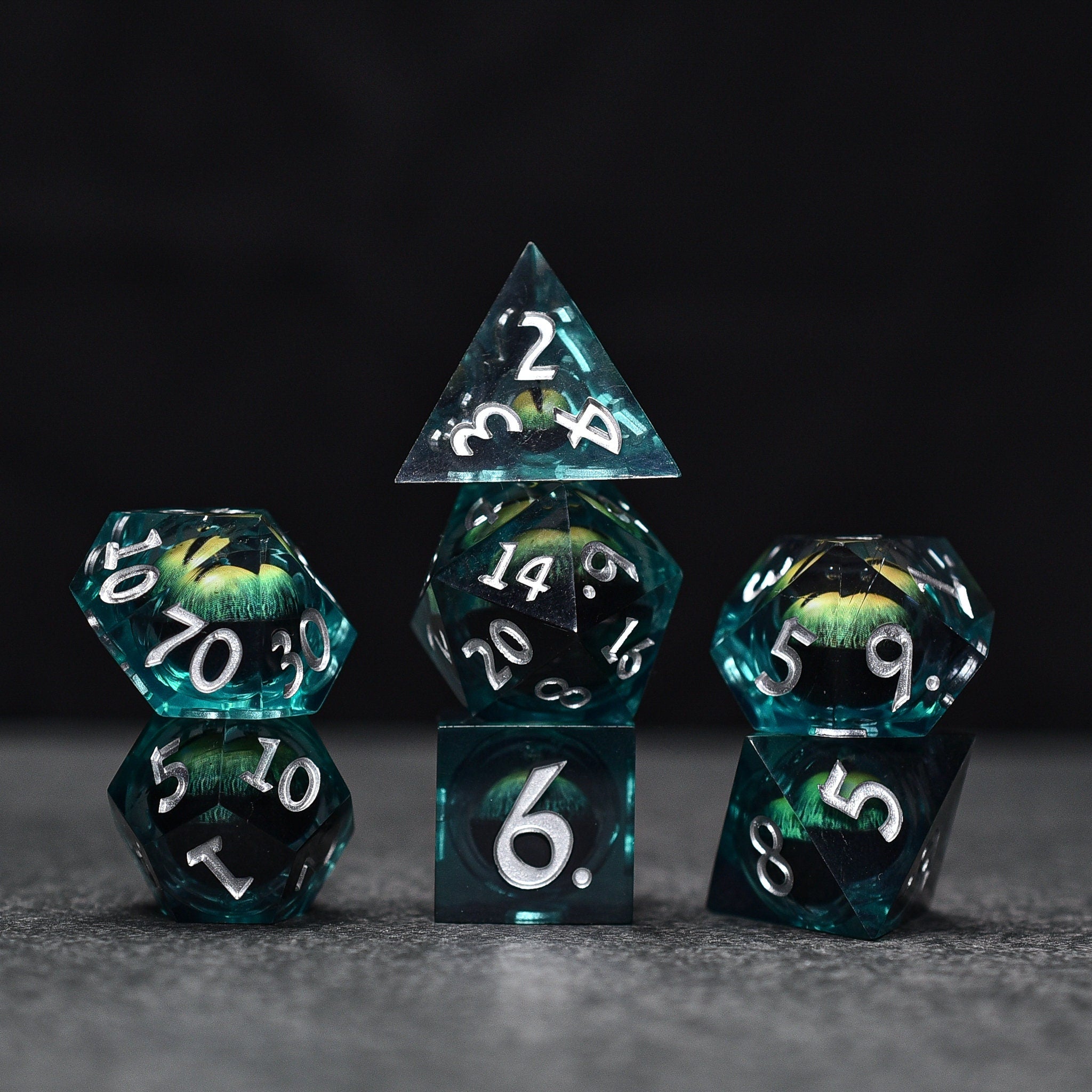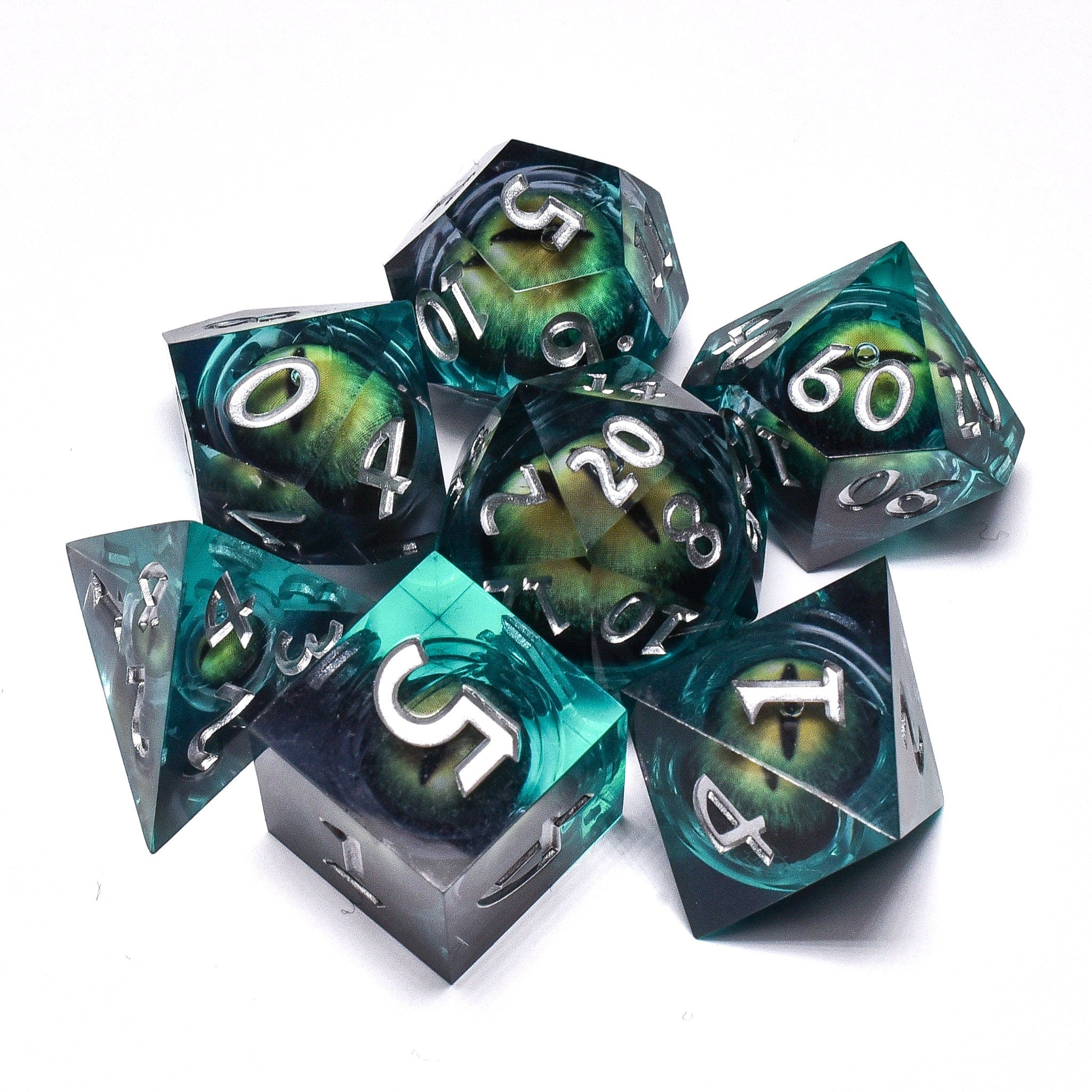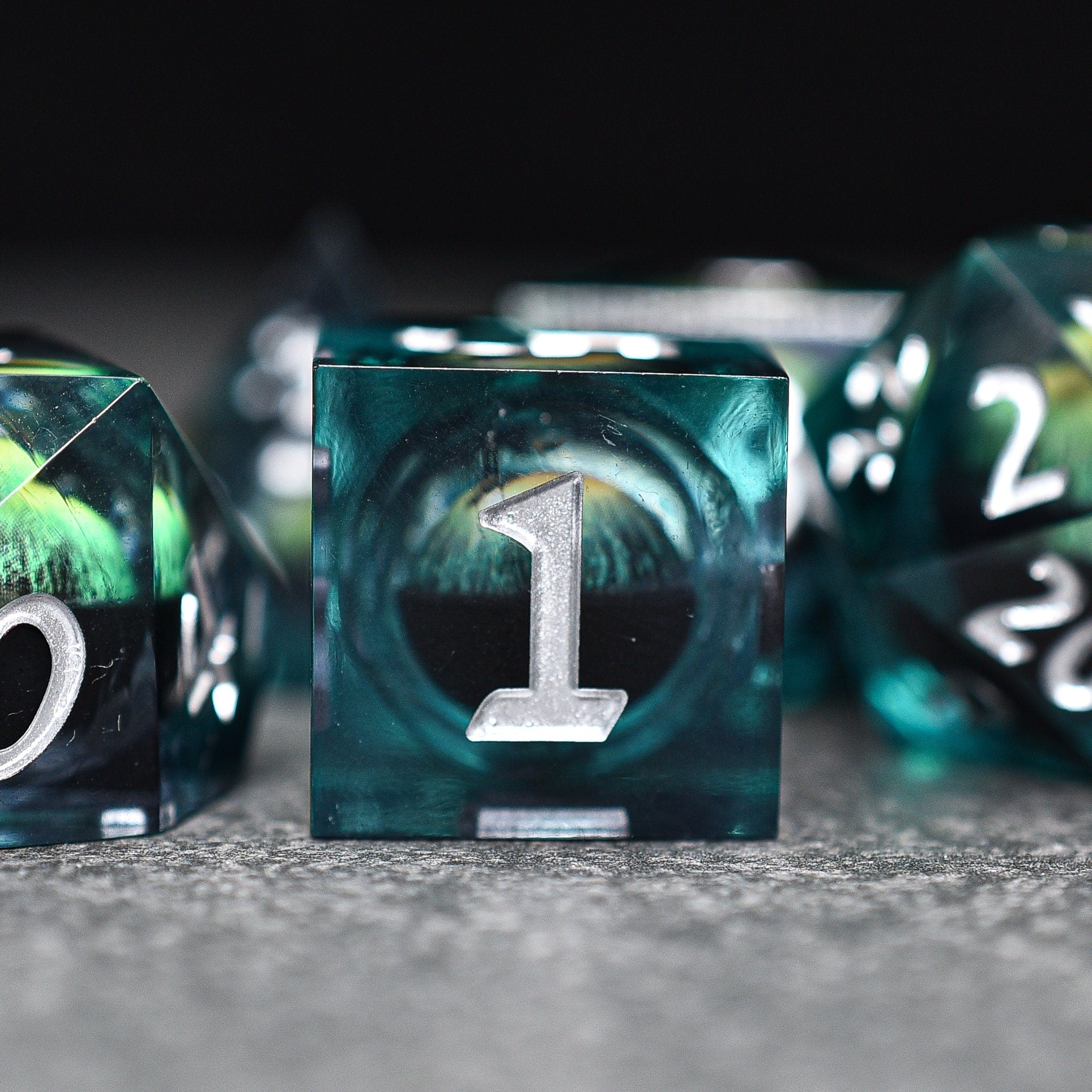 Green Moving Eye Liquid Core DND/TTRPG Dice set