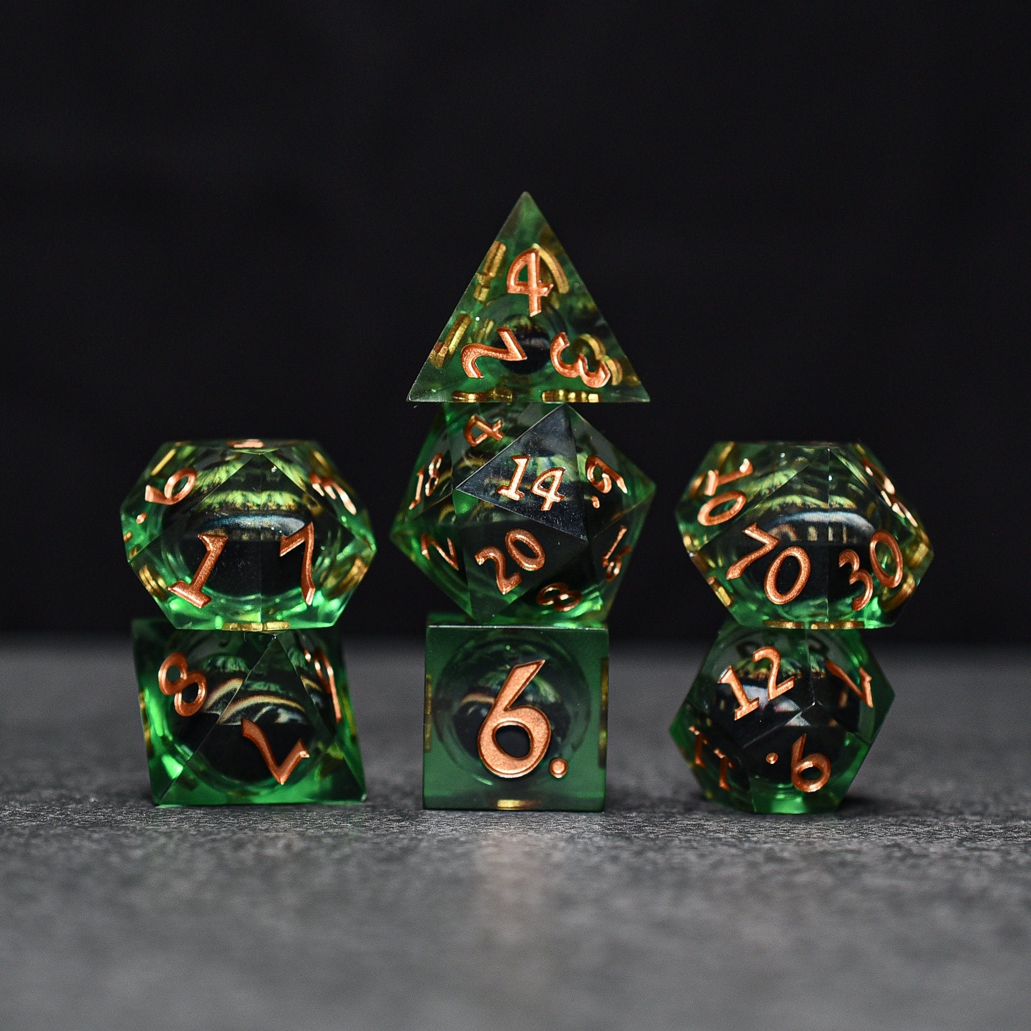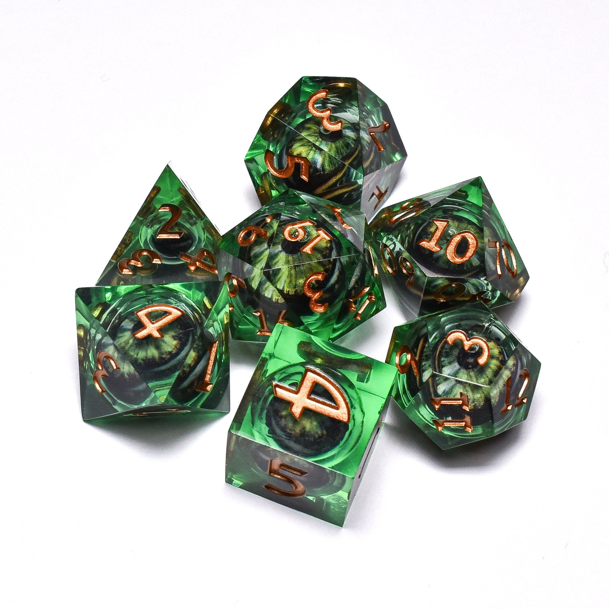 Green Moving Eyeball Liquid Core DND/TTRPG Dice set