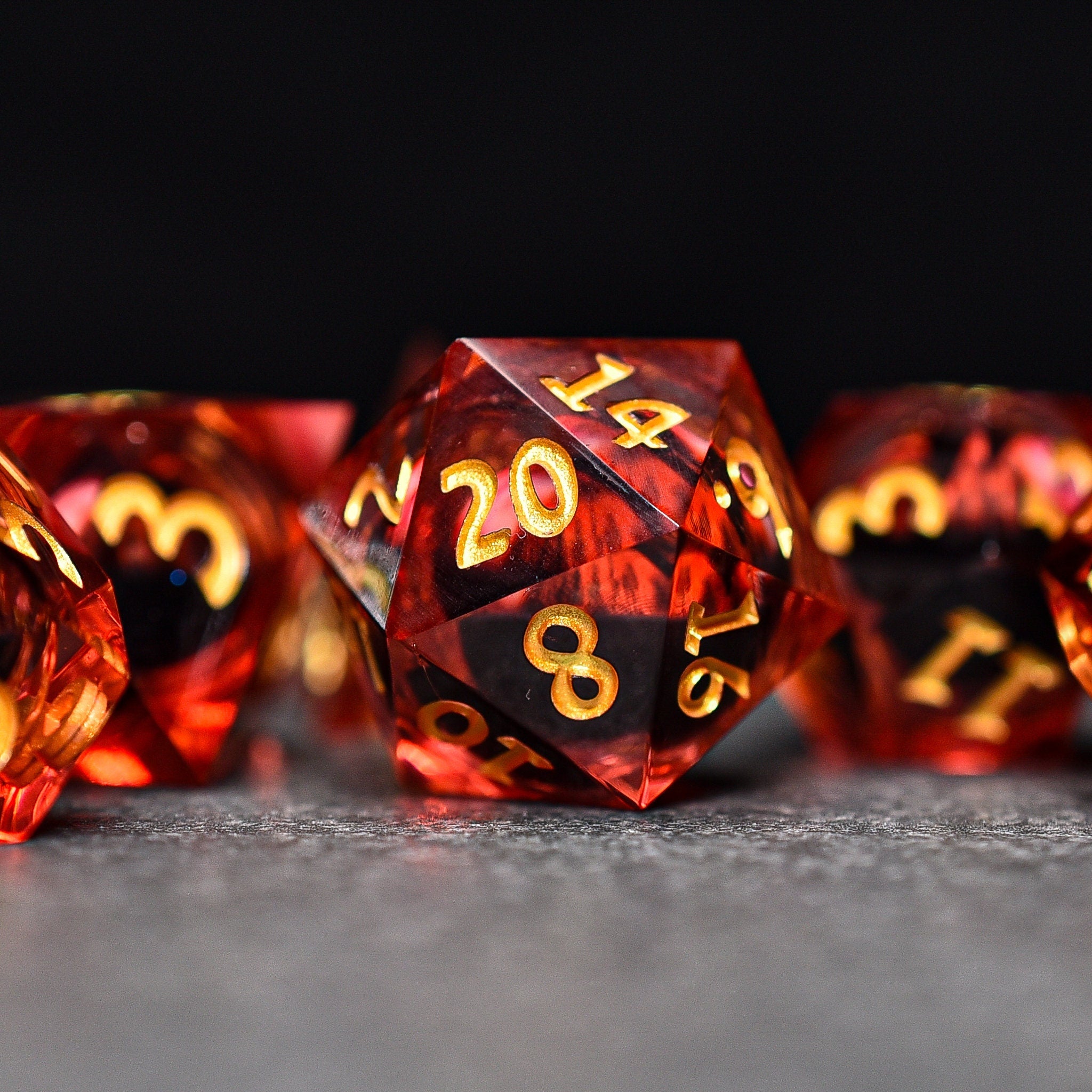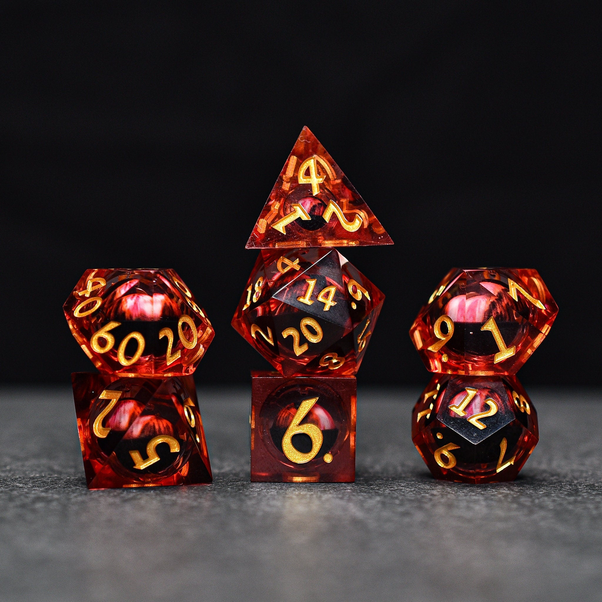 Red Demon Eye Moving Liquid Core DND/TTRPG Dice set