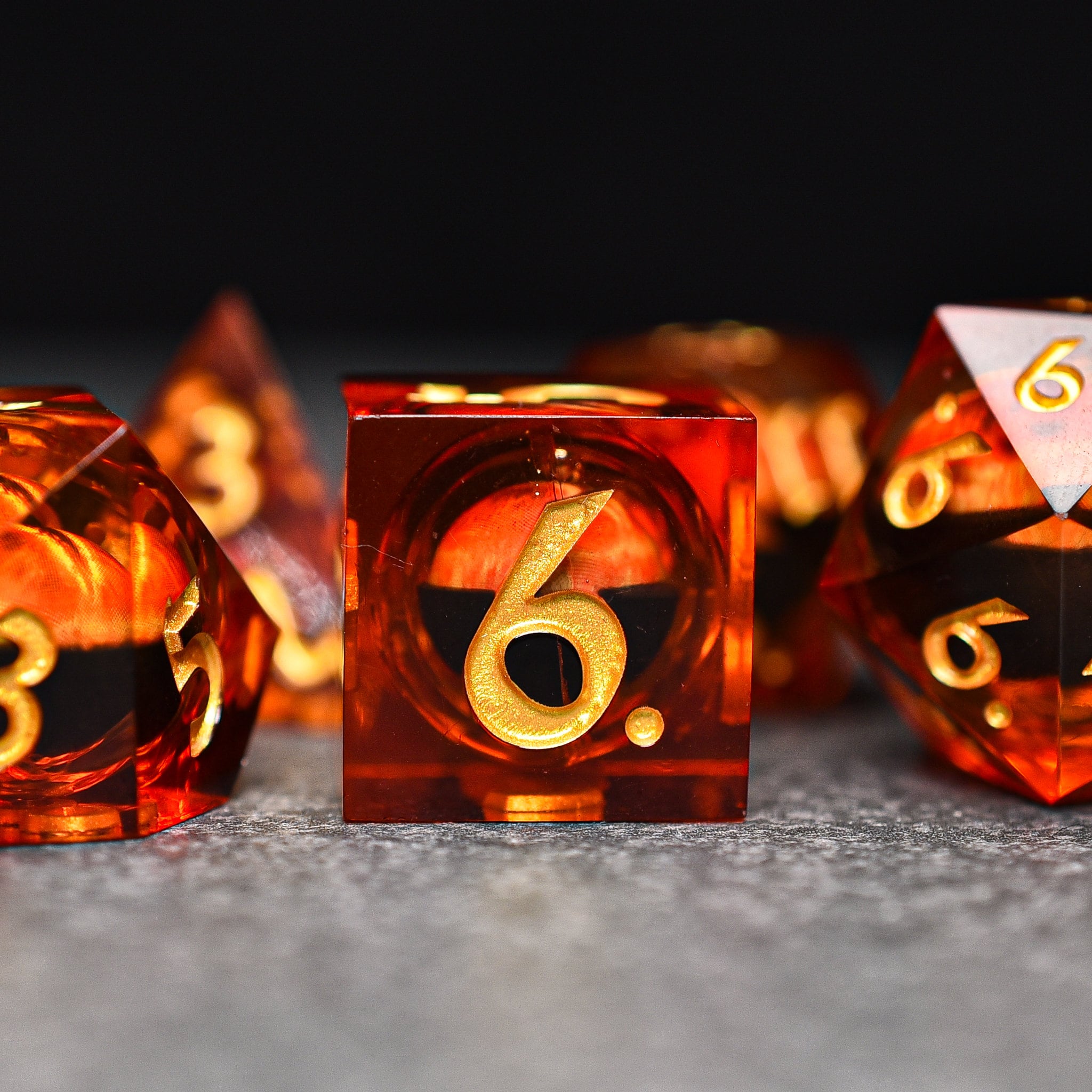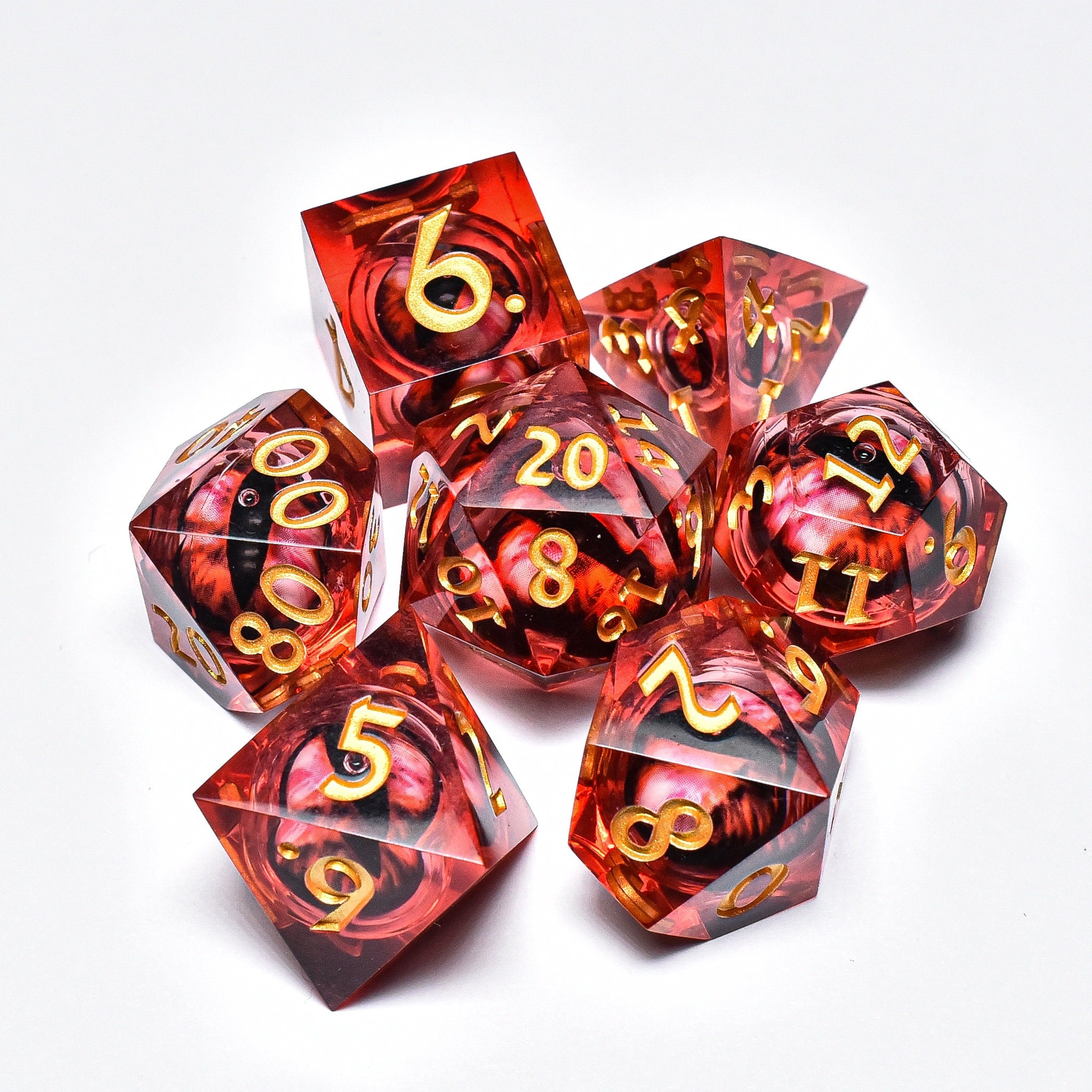 Red Reptilian Moving Eye Liquid Core DND/TTRPG Dice set