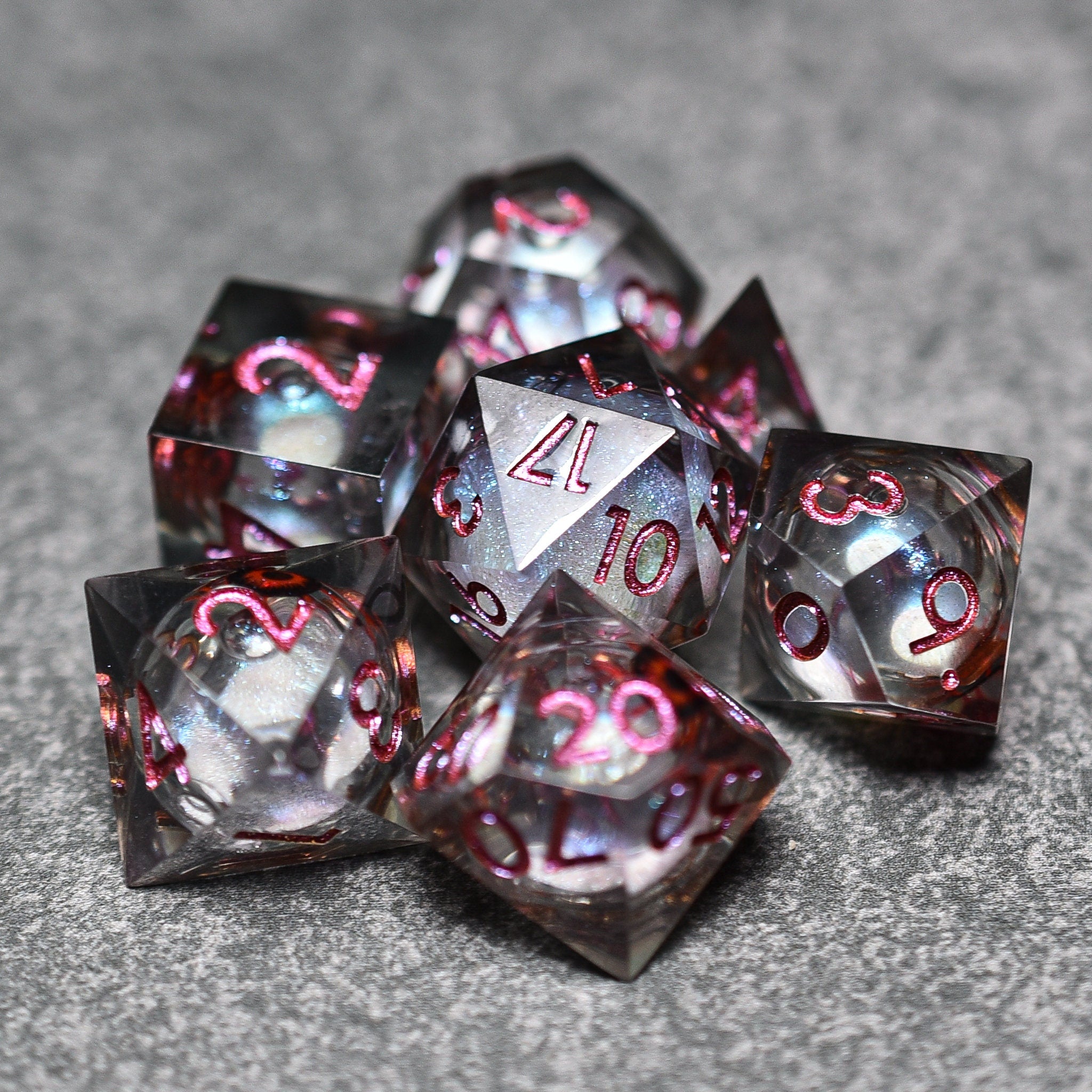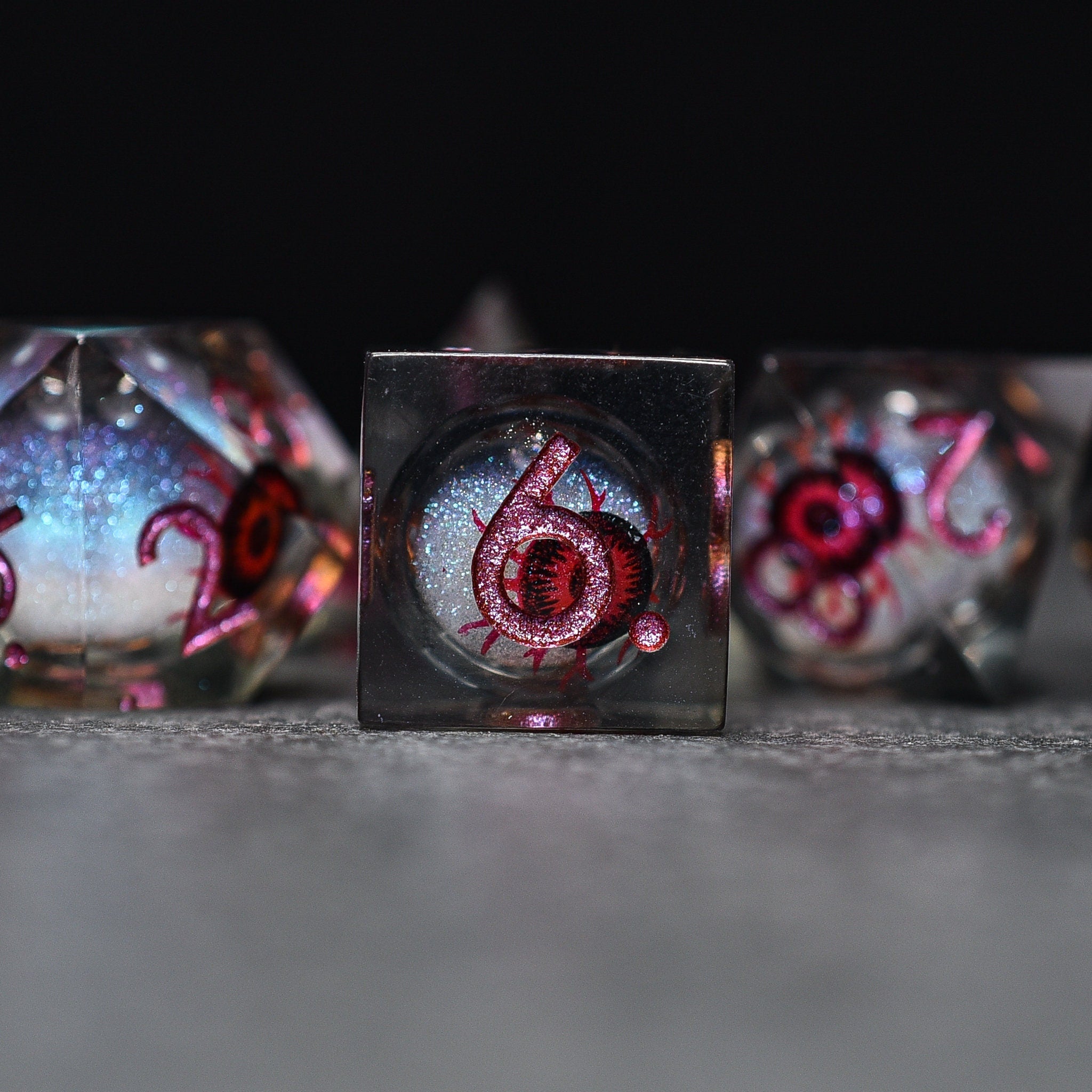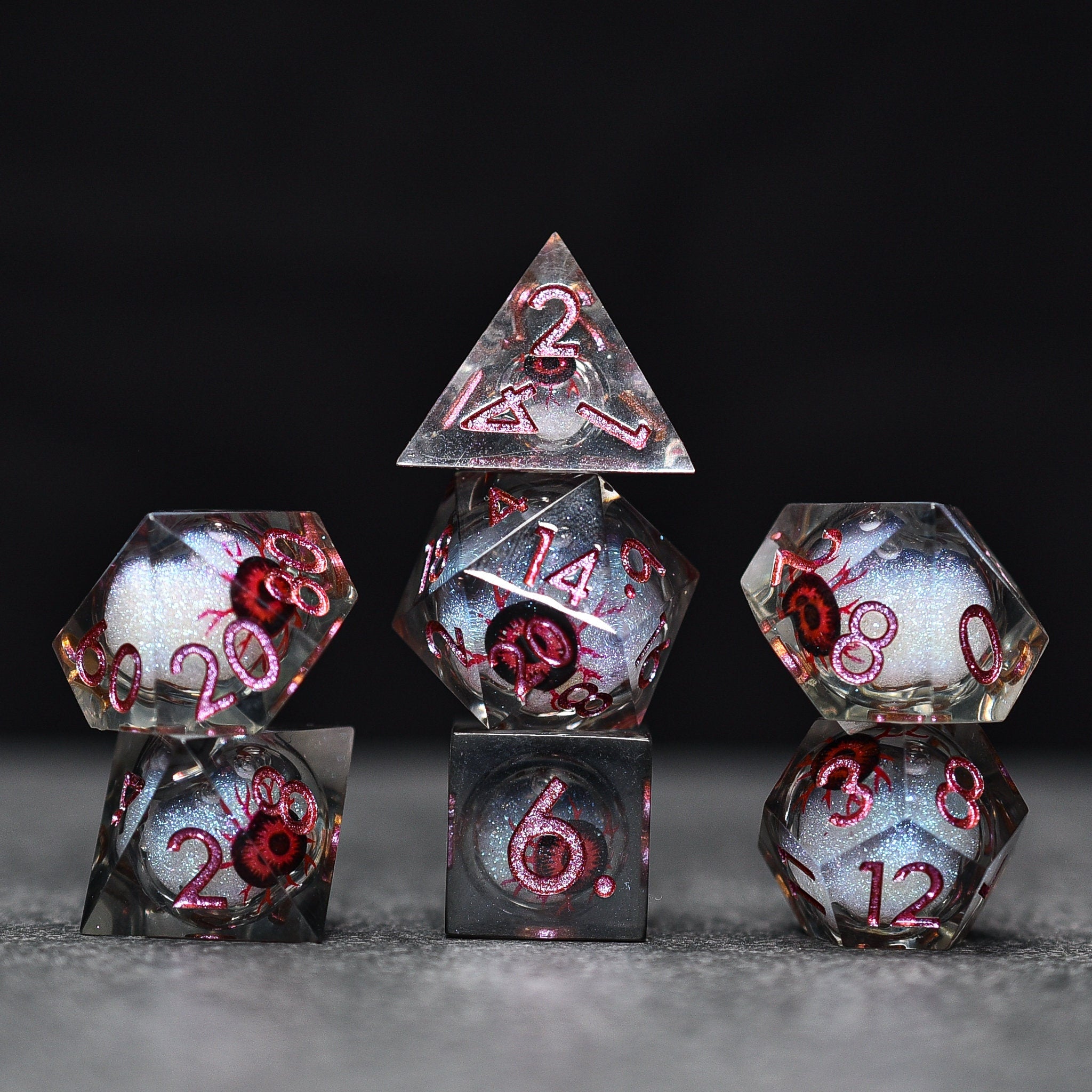Redshot Eyeball Liquid Core Sharp Edge DND/TTRPG Dice set