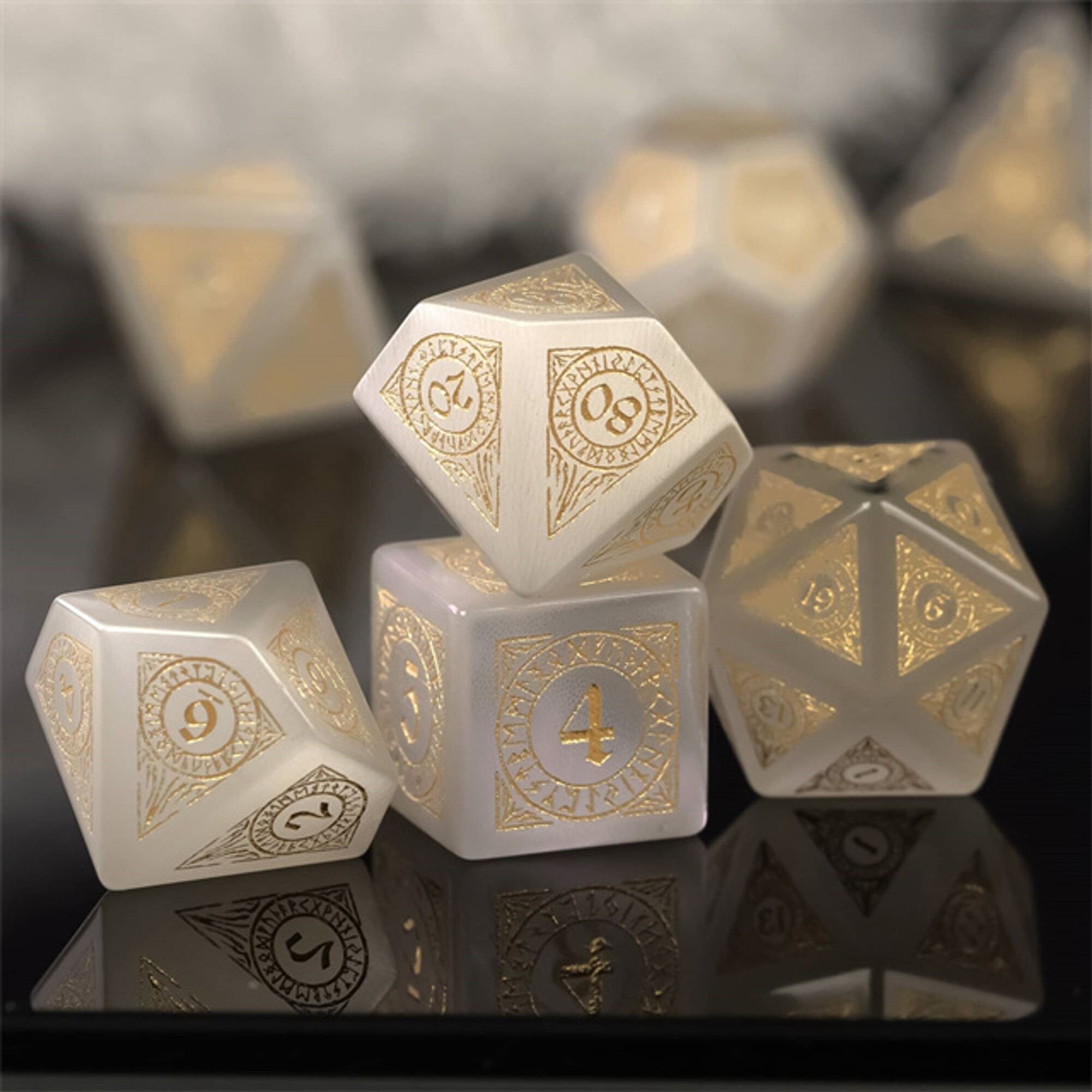 Golden Path Opalite Semi-Precious Gemstone Dice Dnd Dice Set (7) | Dungeons and Dragons (DnD)