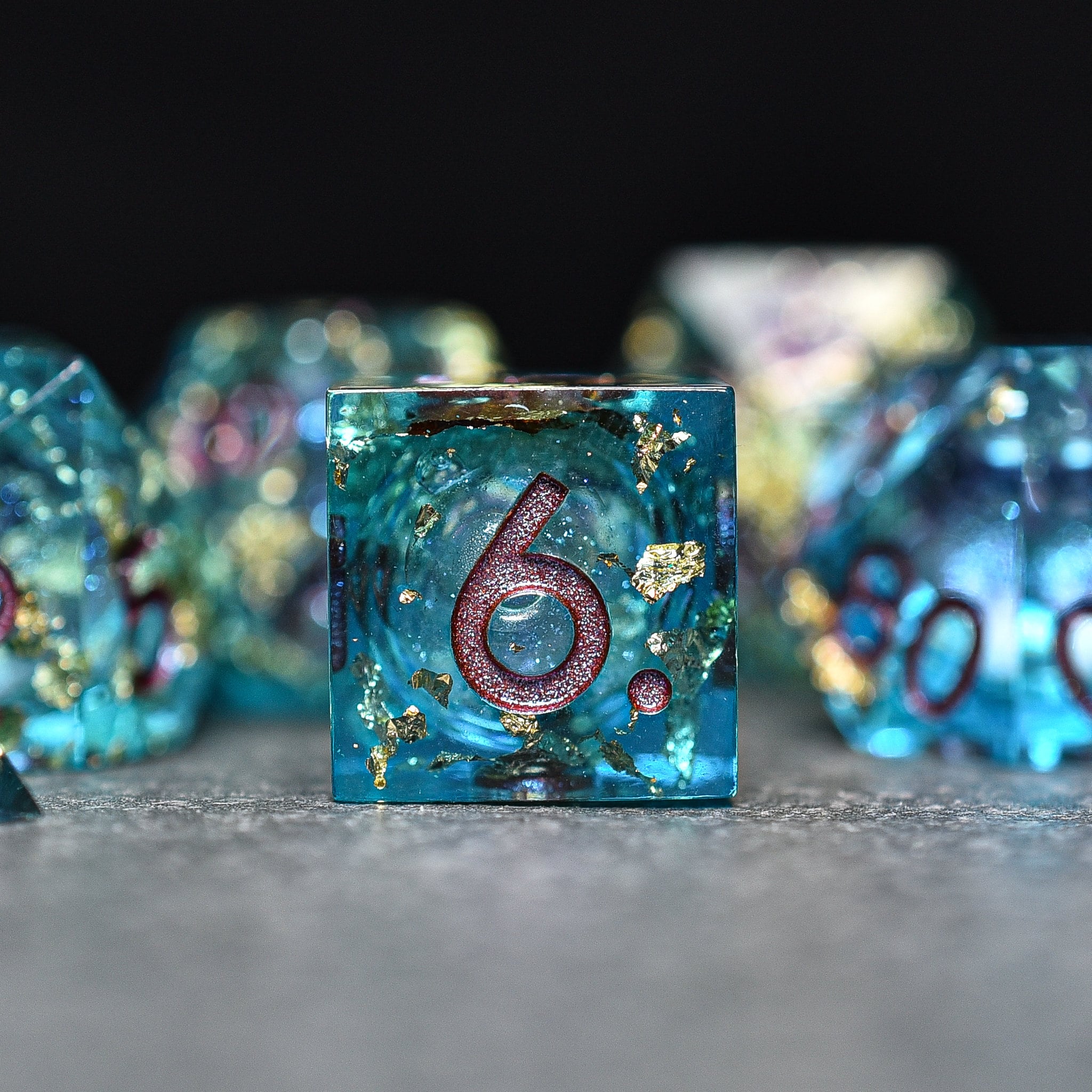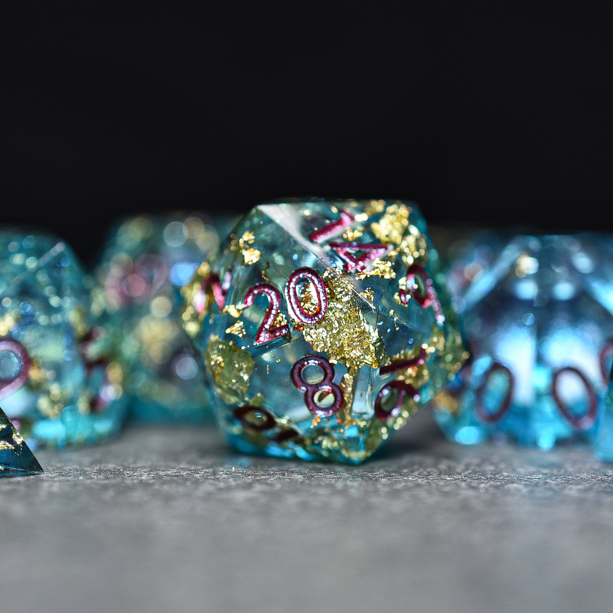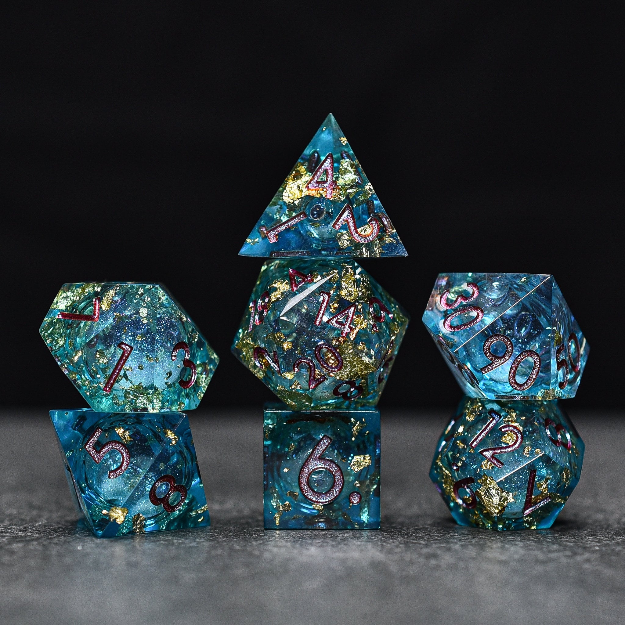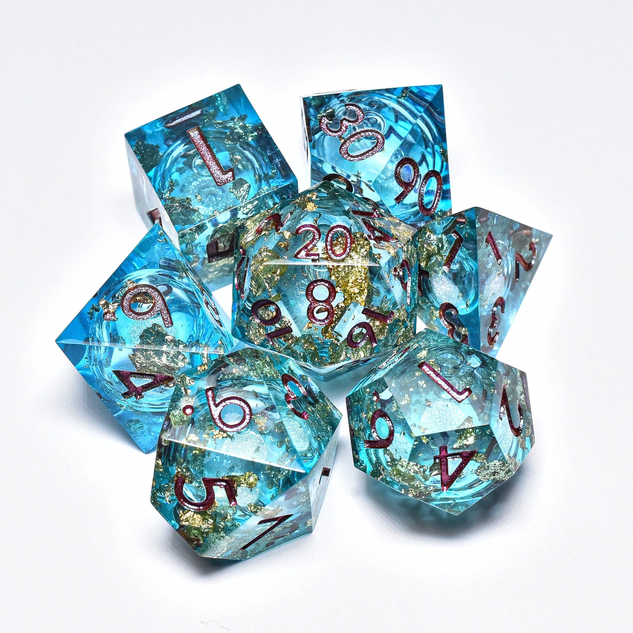 Gold Leaf Liquid Core Sharp Edge DND/TTRPG Dice set