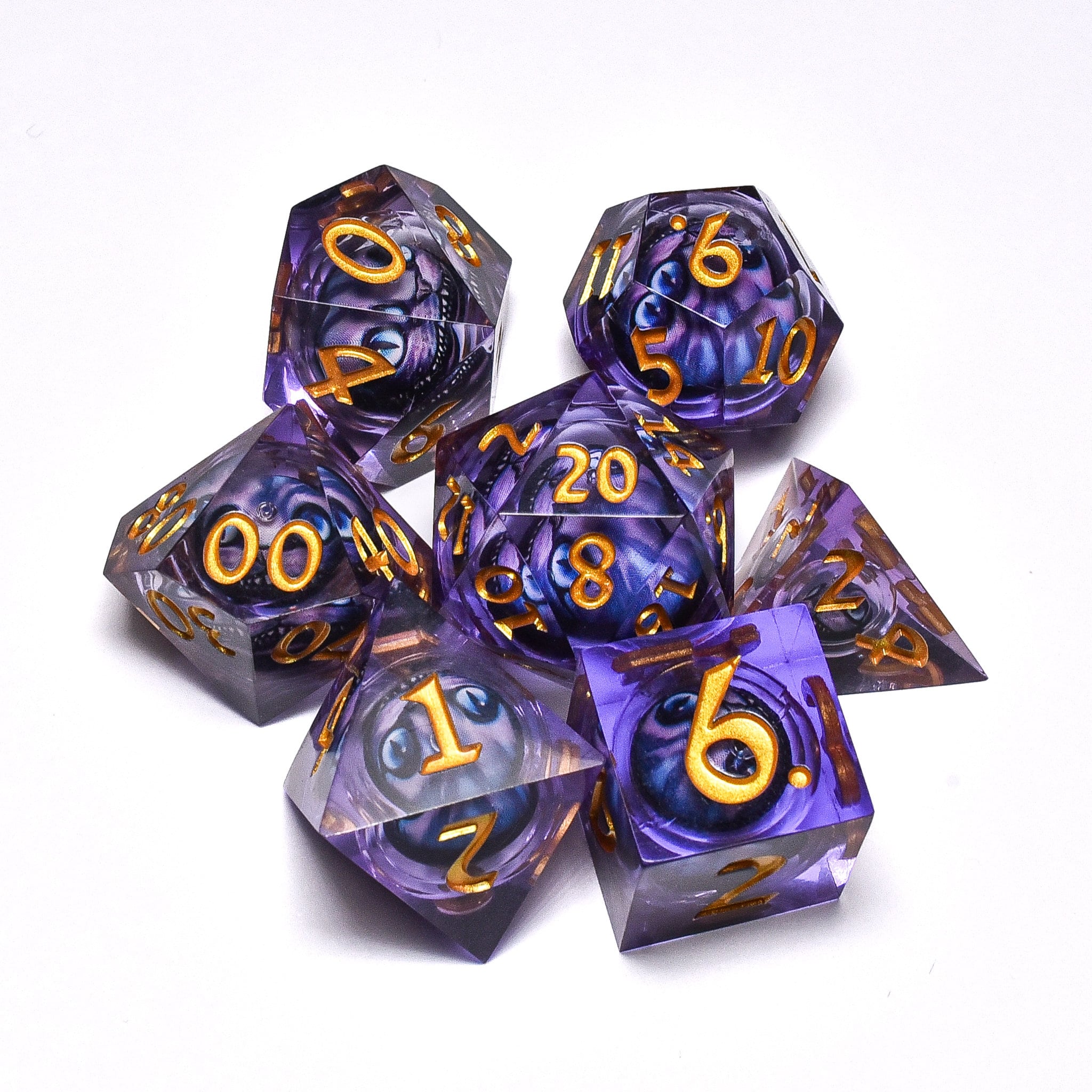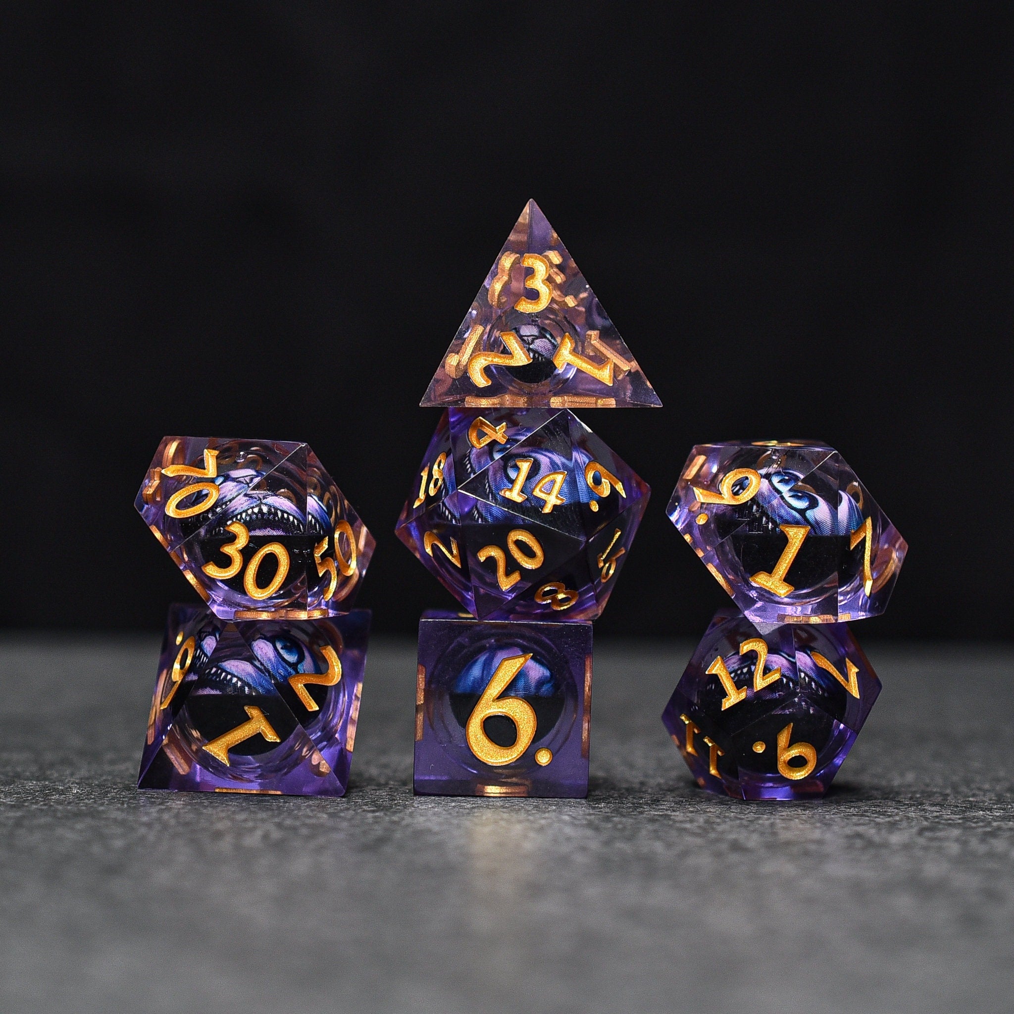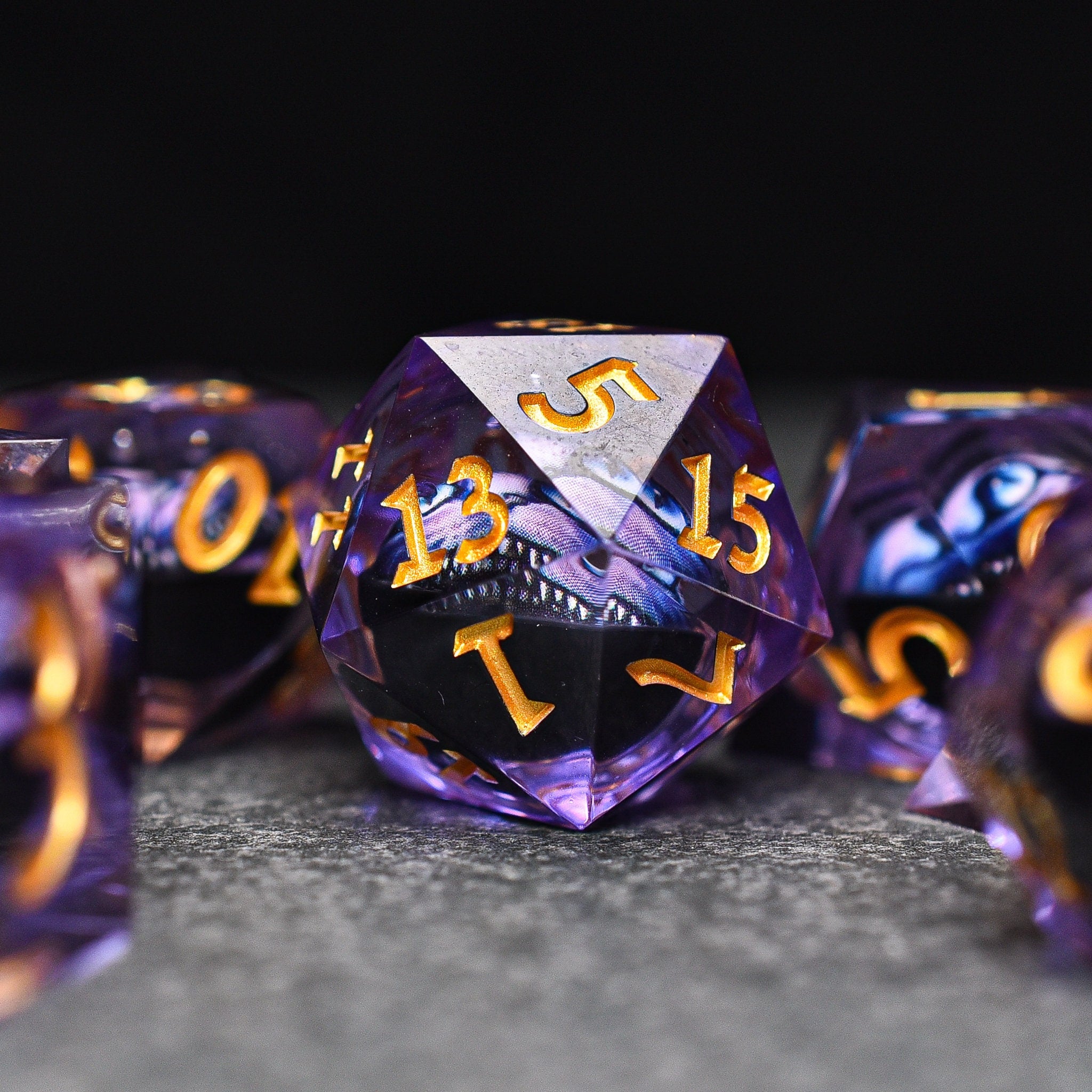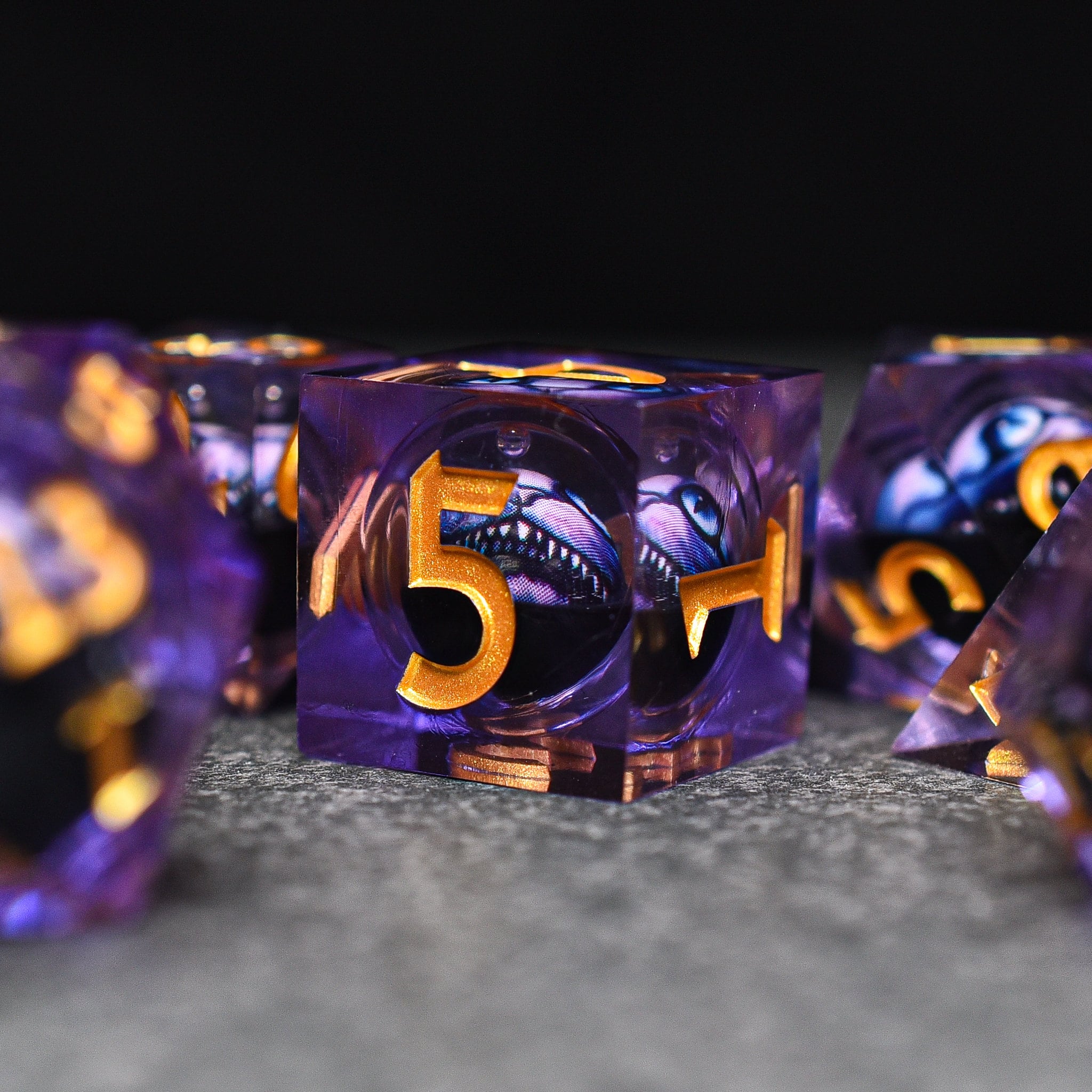 Sphynx Cat Moving Liquid Core Sharp Edge DND/TTRPG Dice set