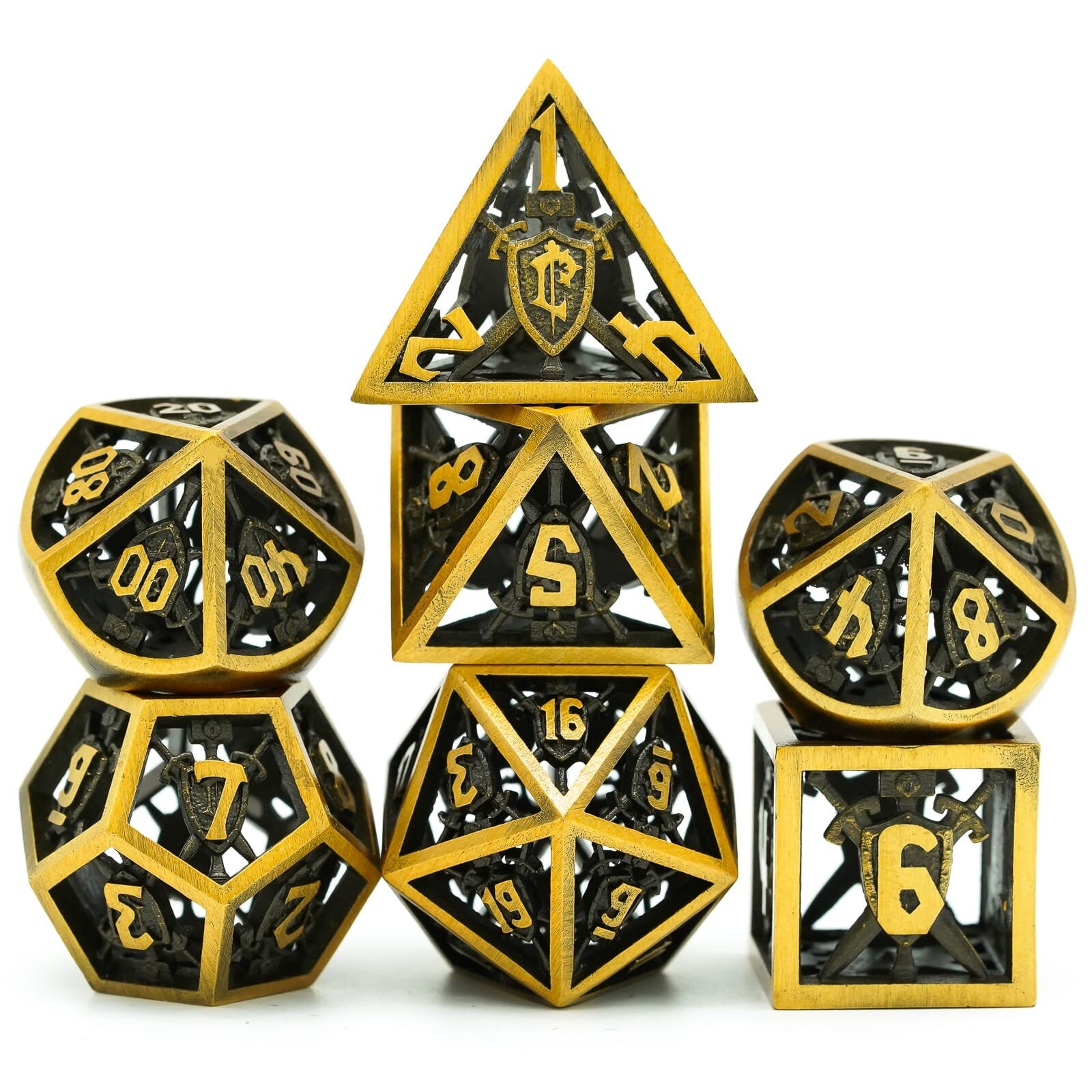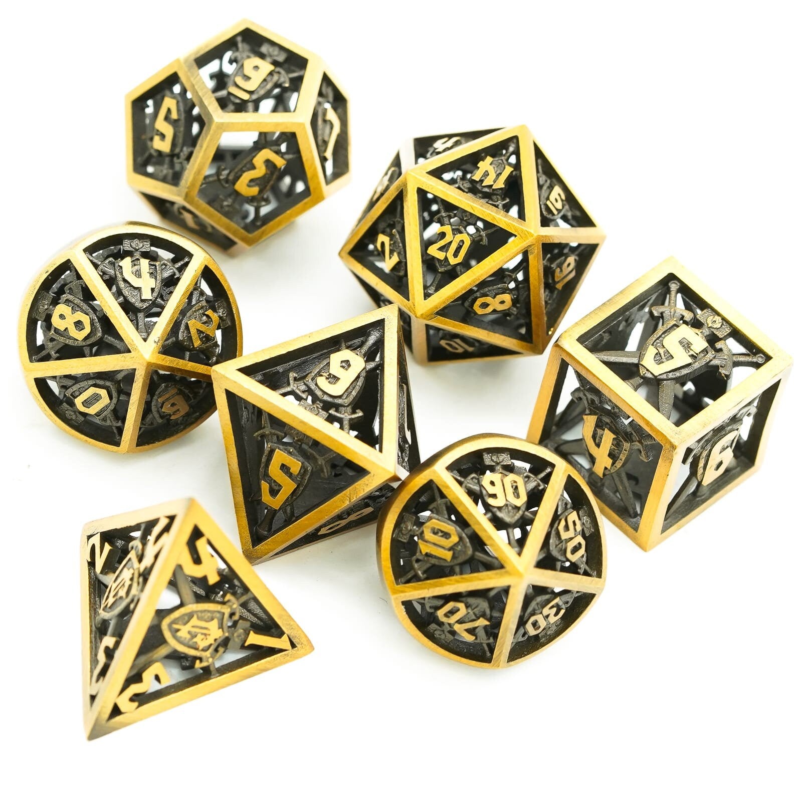 Retro Hollow Shield Golden Metal DND/TTRPG Dice set