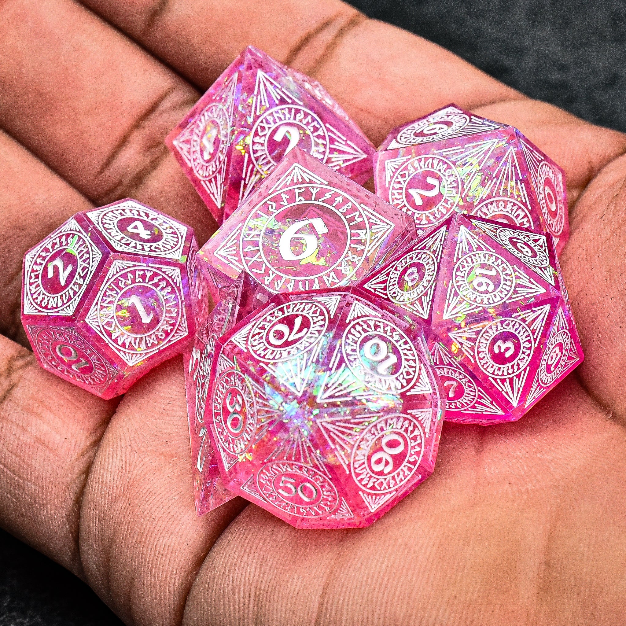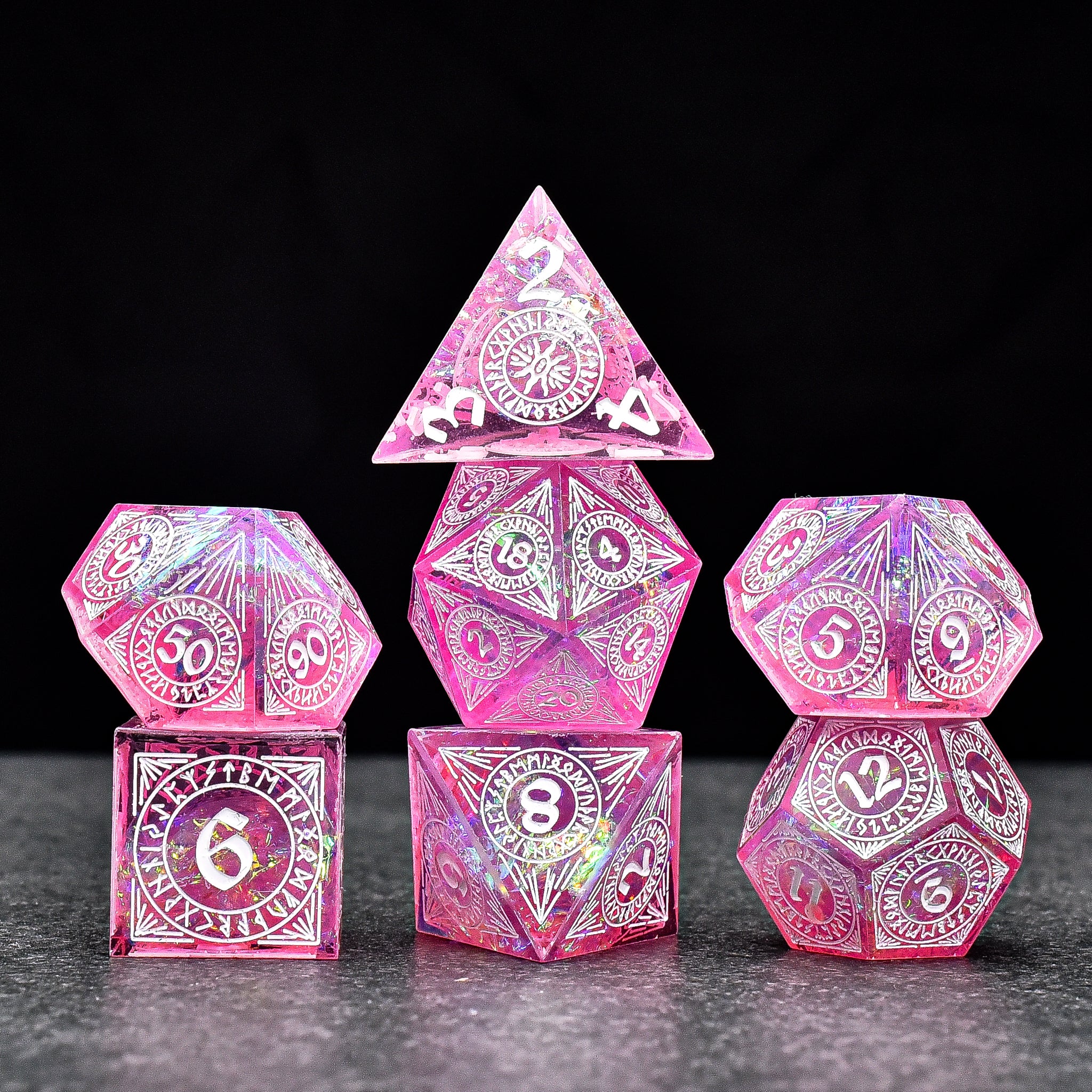 Runic Pink Sharp Edge DND/TTRPG Dice set