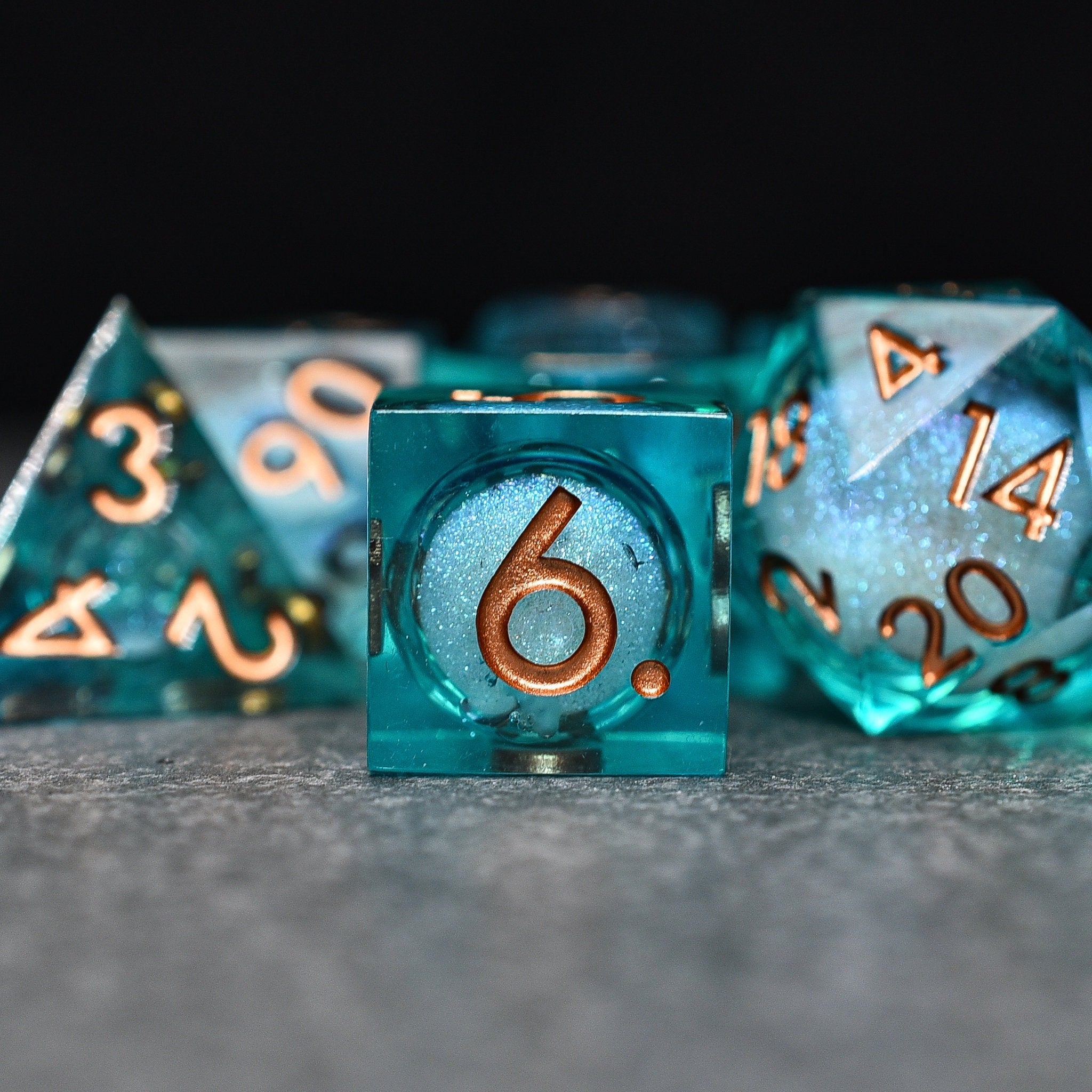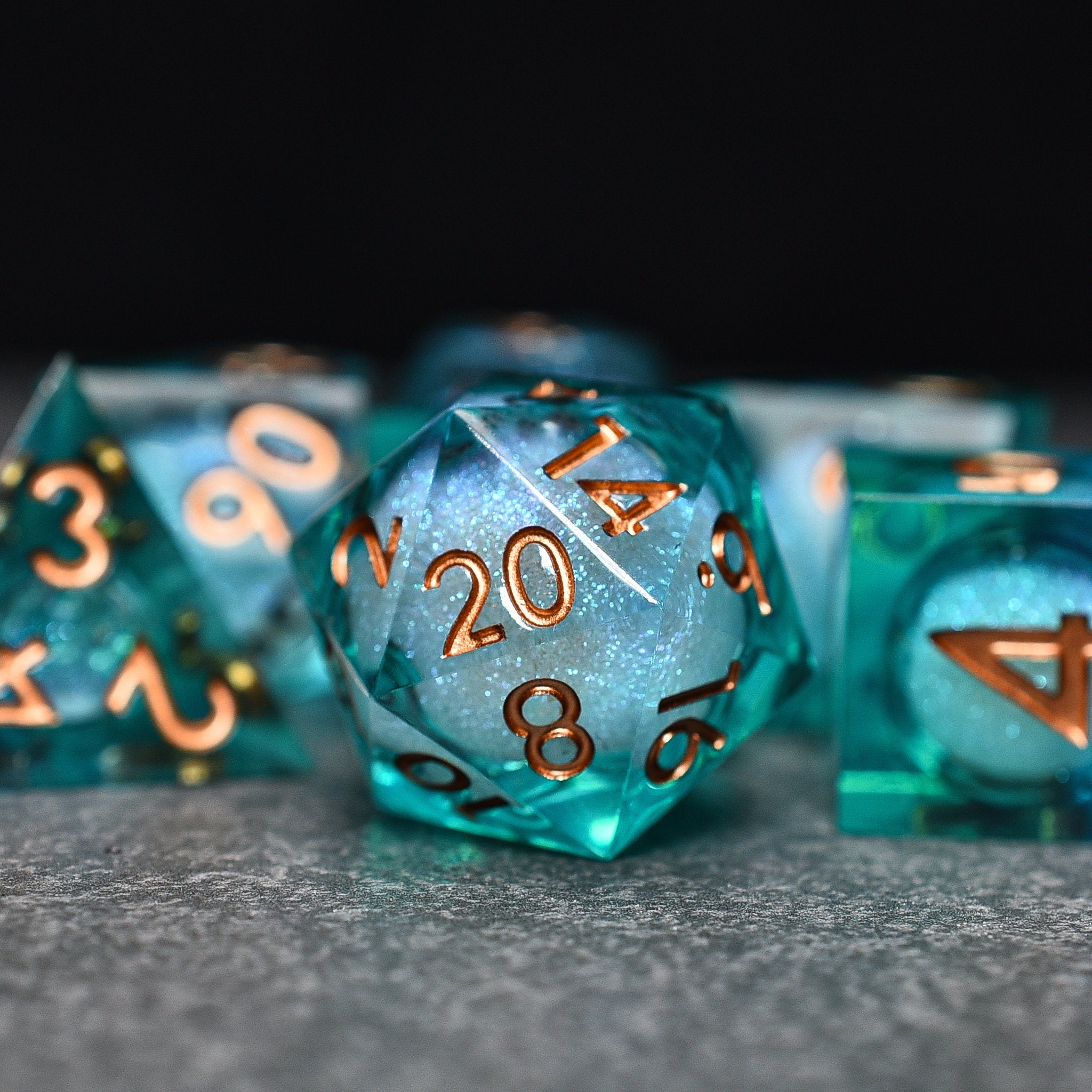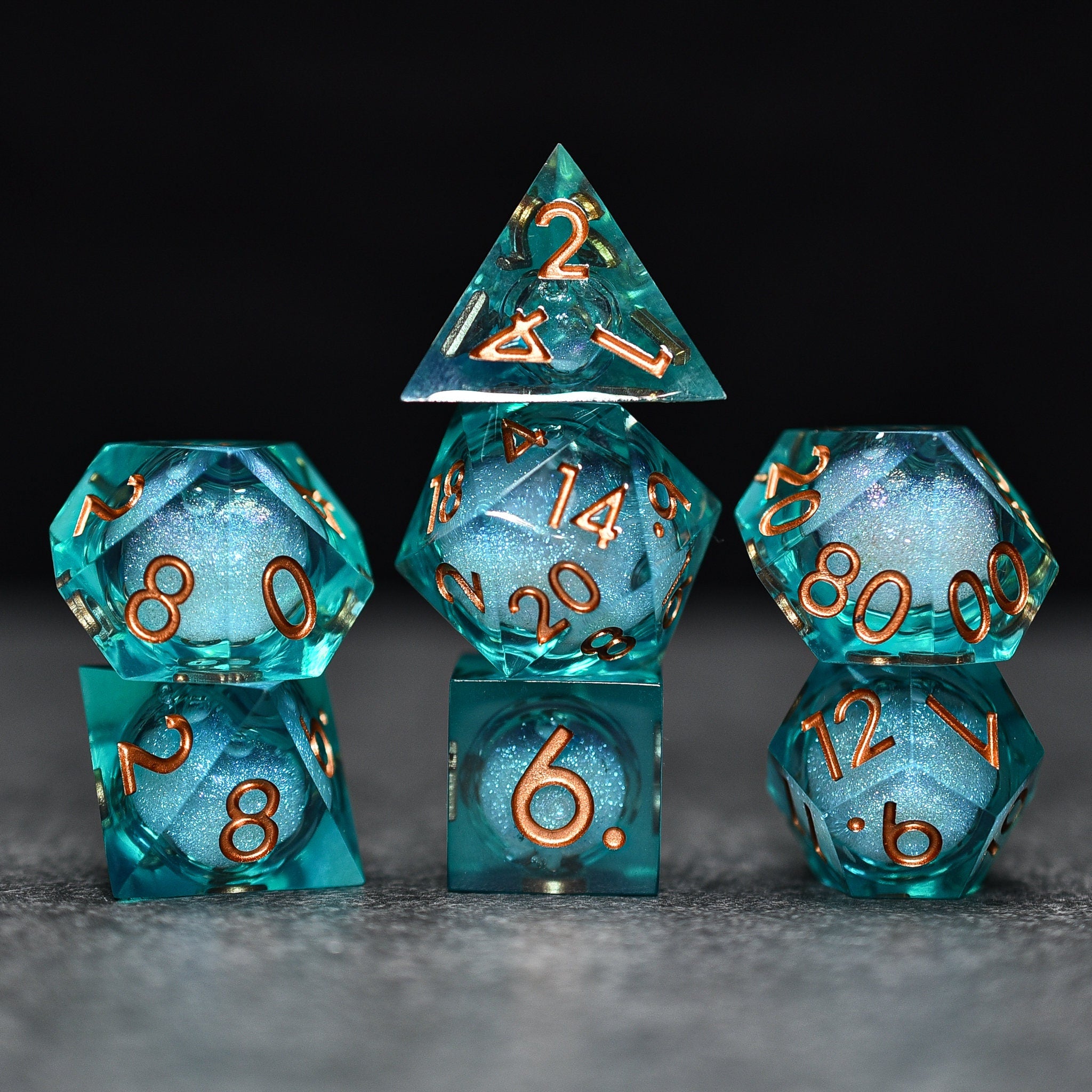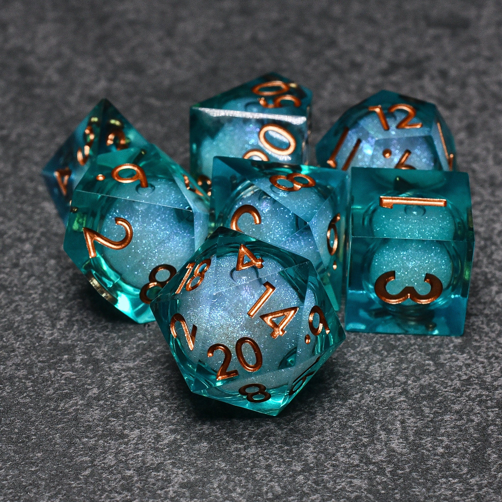 Serpentine Liquid Core Sharp Edge DND/TTRPG Dice set